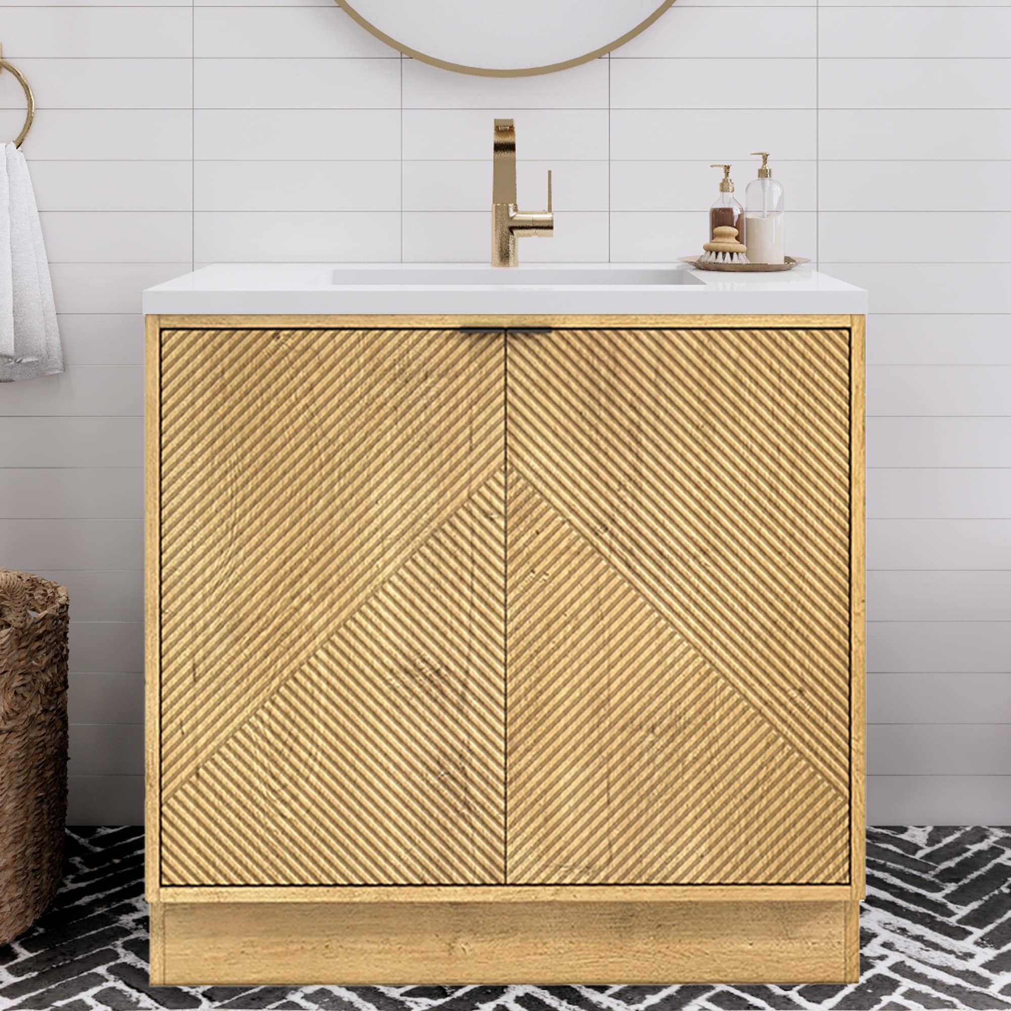 GDFStudio - Halmore Modern Freestanding Bathroom Vanity with Resin Sink, 2 Storage Drawers and a Tip-Out Drawer - 30'W