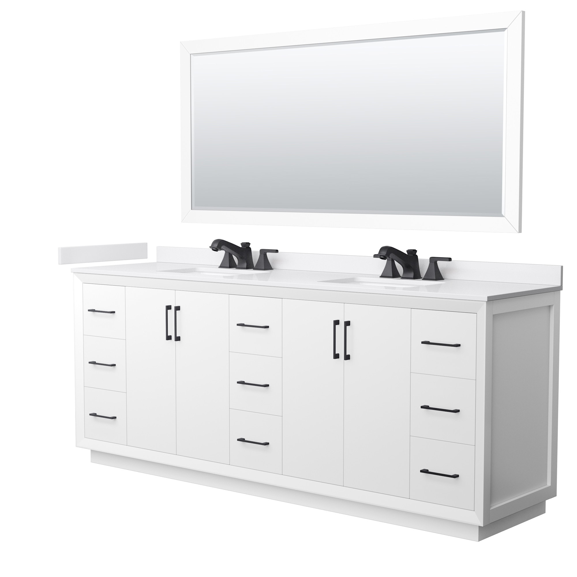 Sheffield 60-inch Double Vanity, 3 Hole Quartz Top, 24-inch Mirrors