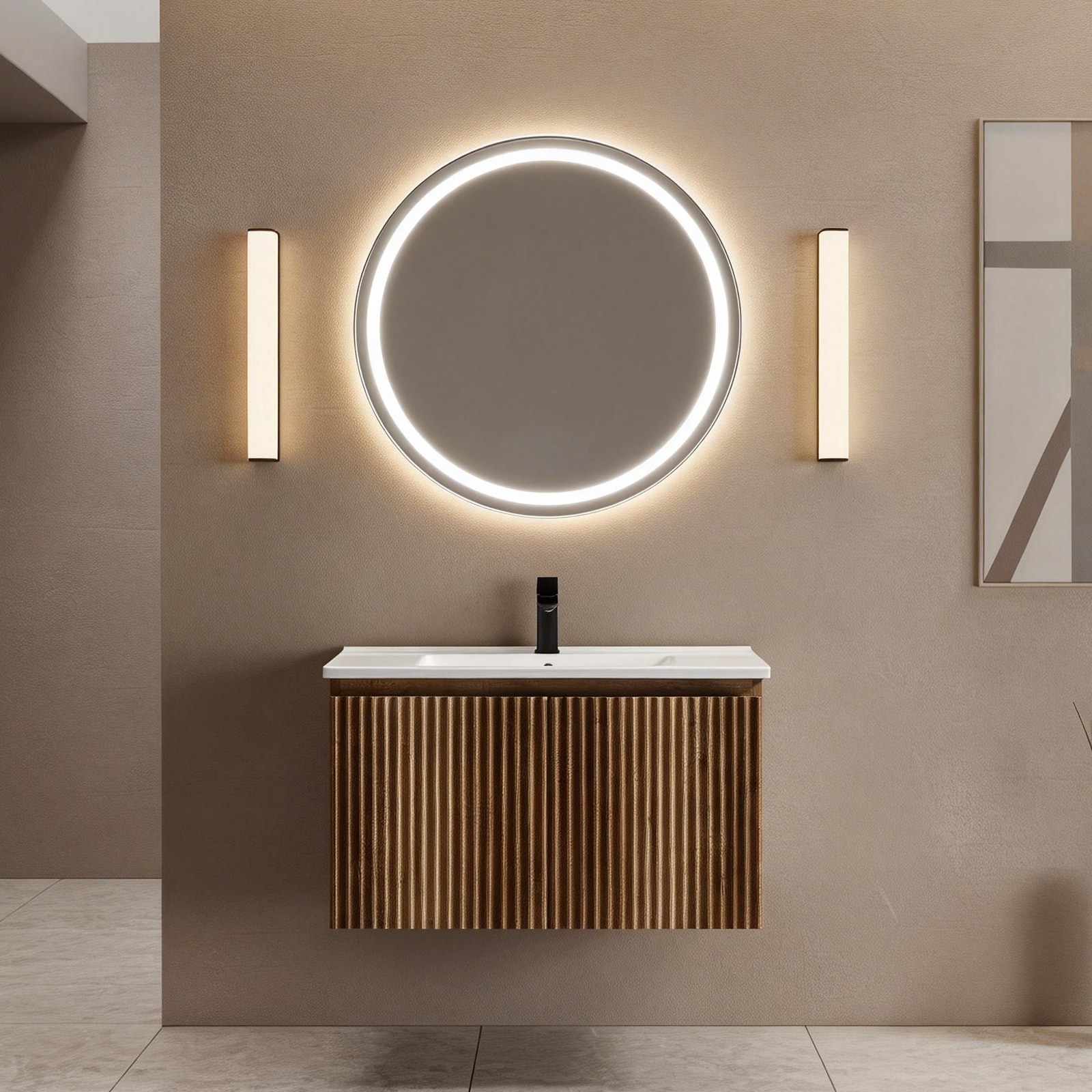 24" Floating Bathroom Vanity with Ceramic Sink - Wall Mounted Fluted Vanity Cabinet with Drawers, for Small Bathrooms