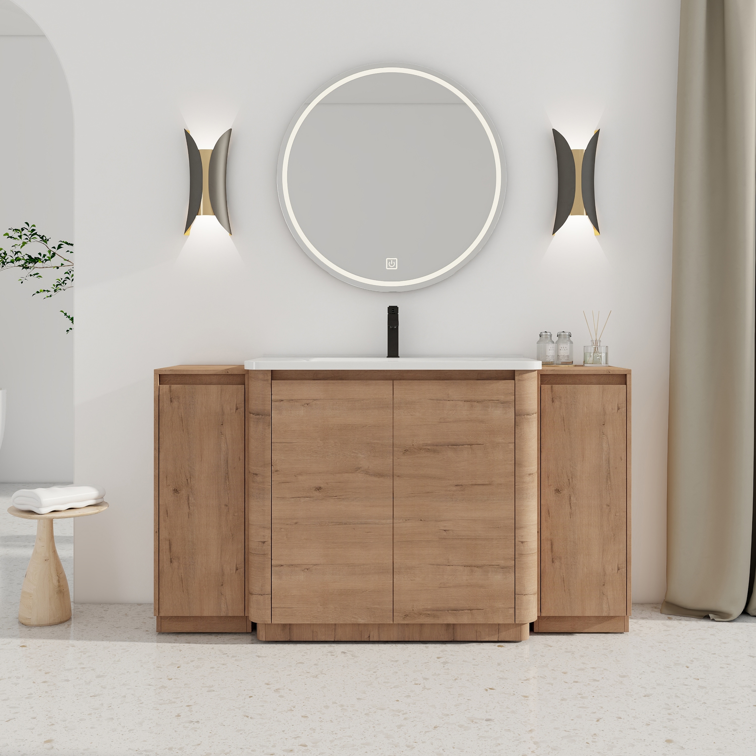 60'' Freestanding Bathroom Vanity With Ceramic Sink, 2-Small Storage Cabinet, Soft-Close Door