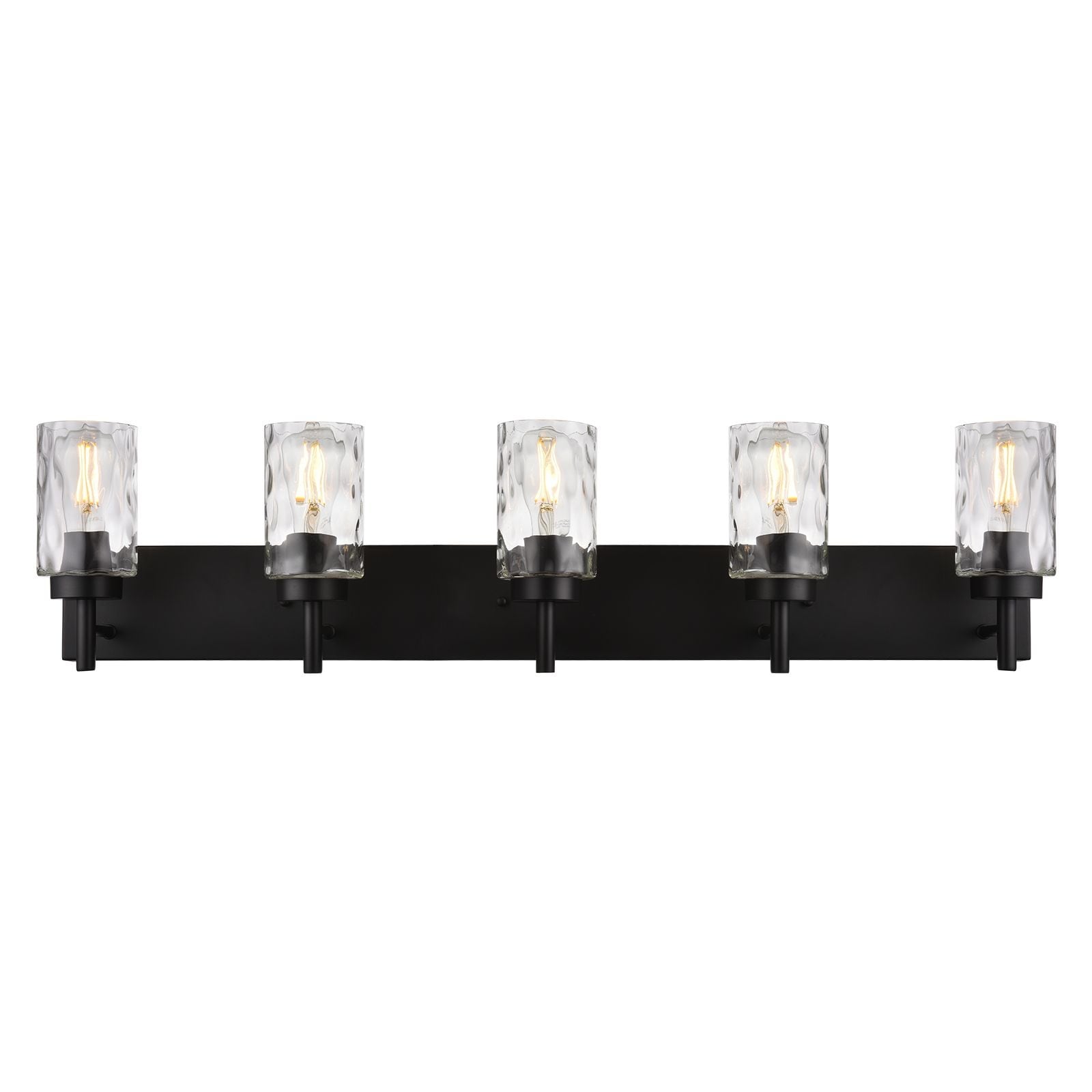 Vanity Light Fixtures 5 Light Modern Wall Sconces Lighting Black Bathroom Lights Wall Mounted with Hammered Glass Shade
