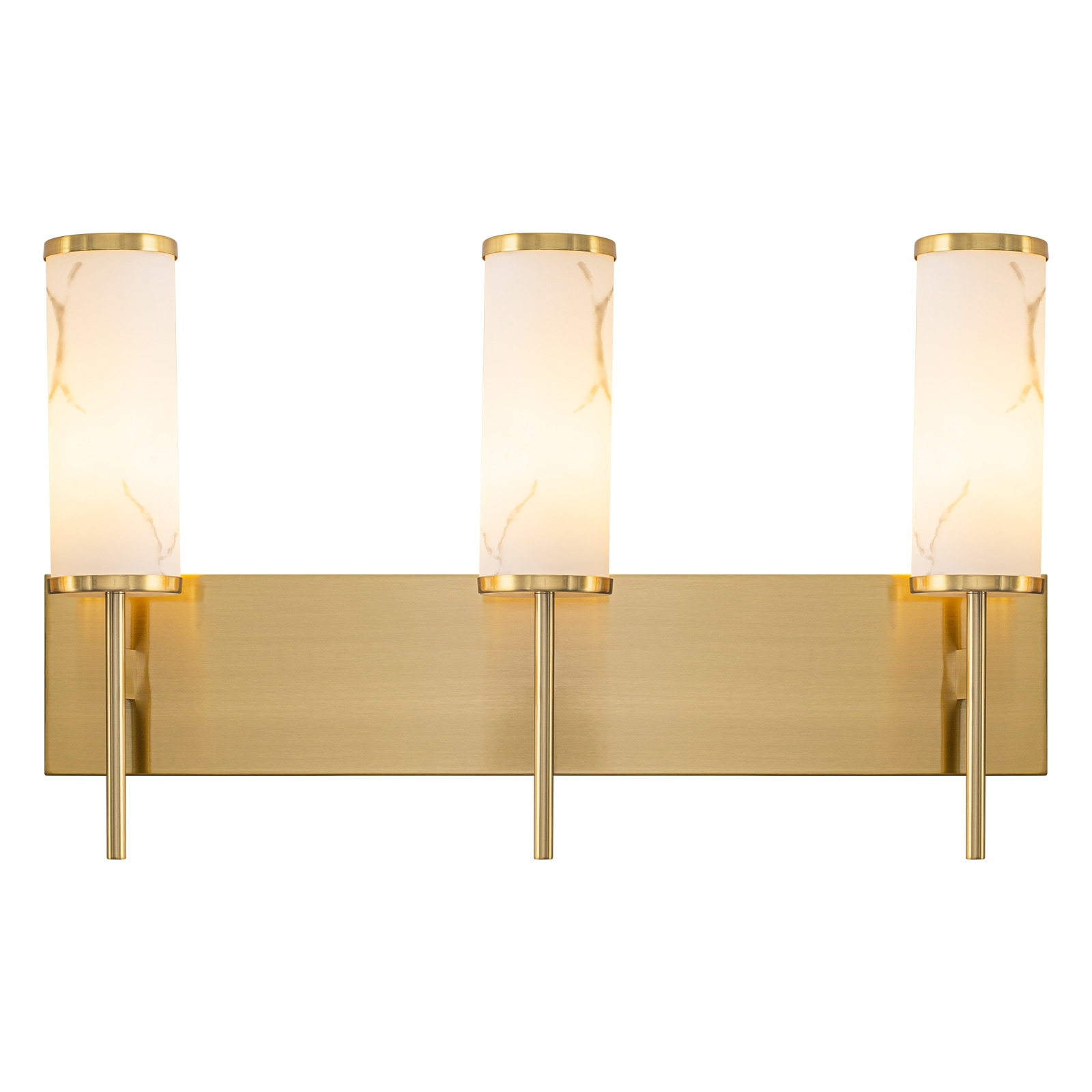 3-Light Gold Vanity Light Cylindrical Marble Crackle Glass Shades