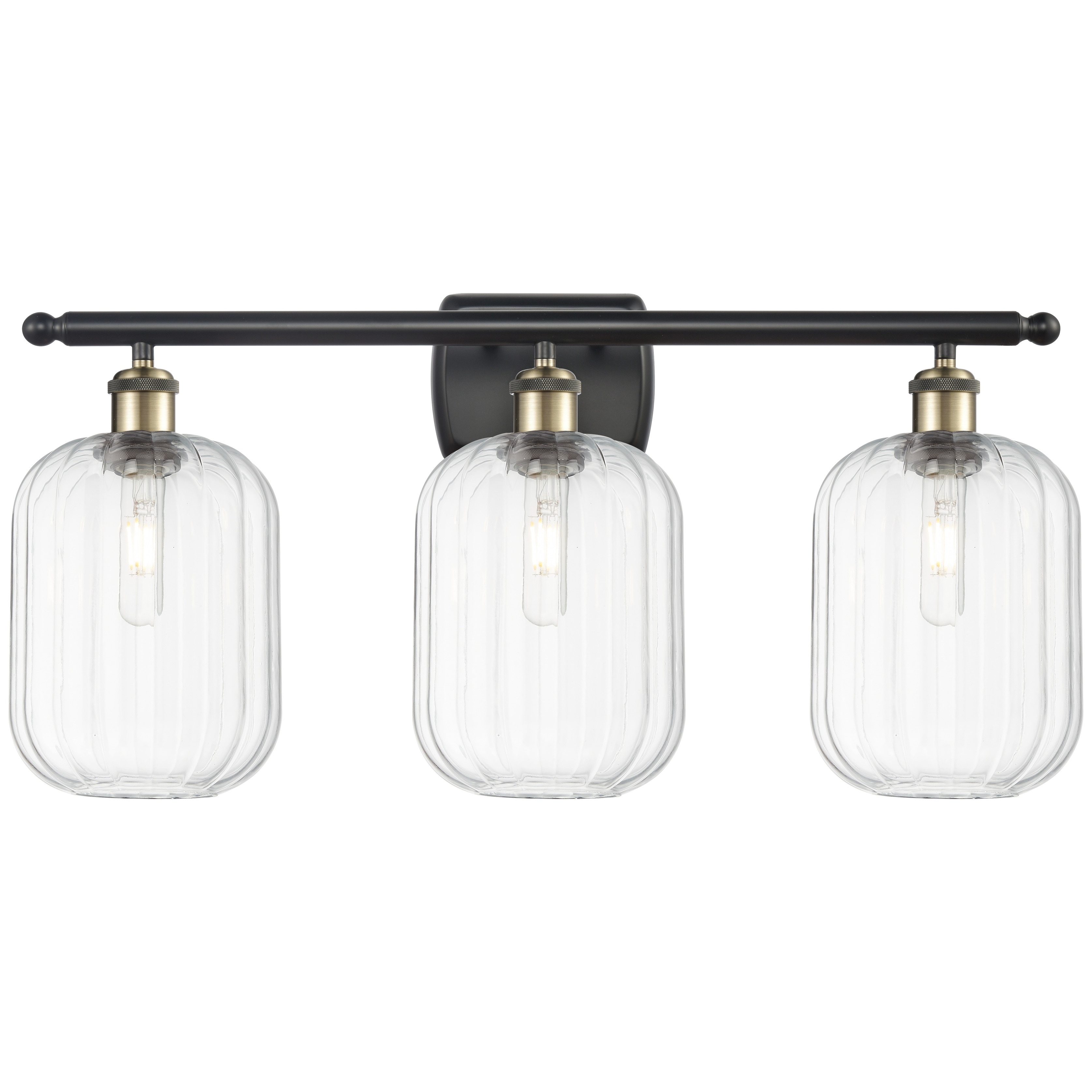 Modern Classic 3-Light Black Bathroom Vanity Light Fixture Gold Brass Wall Sconces with Cylinder Glass - 21" L x 6.5" W x 9" H