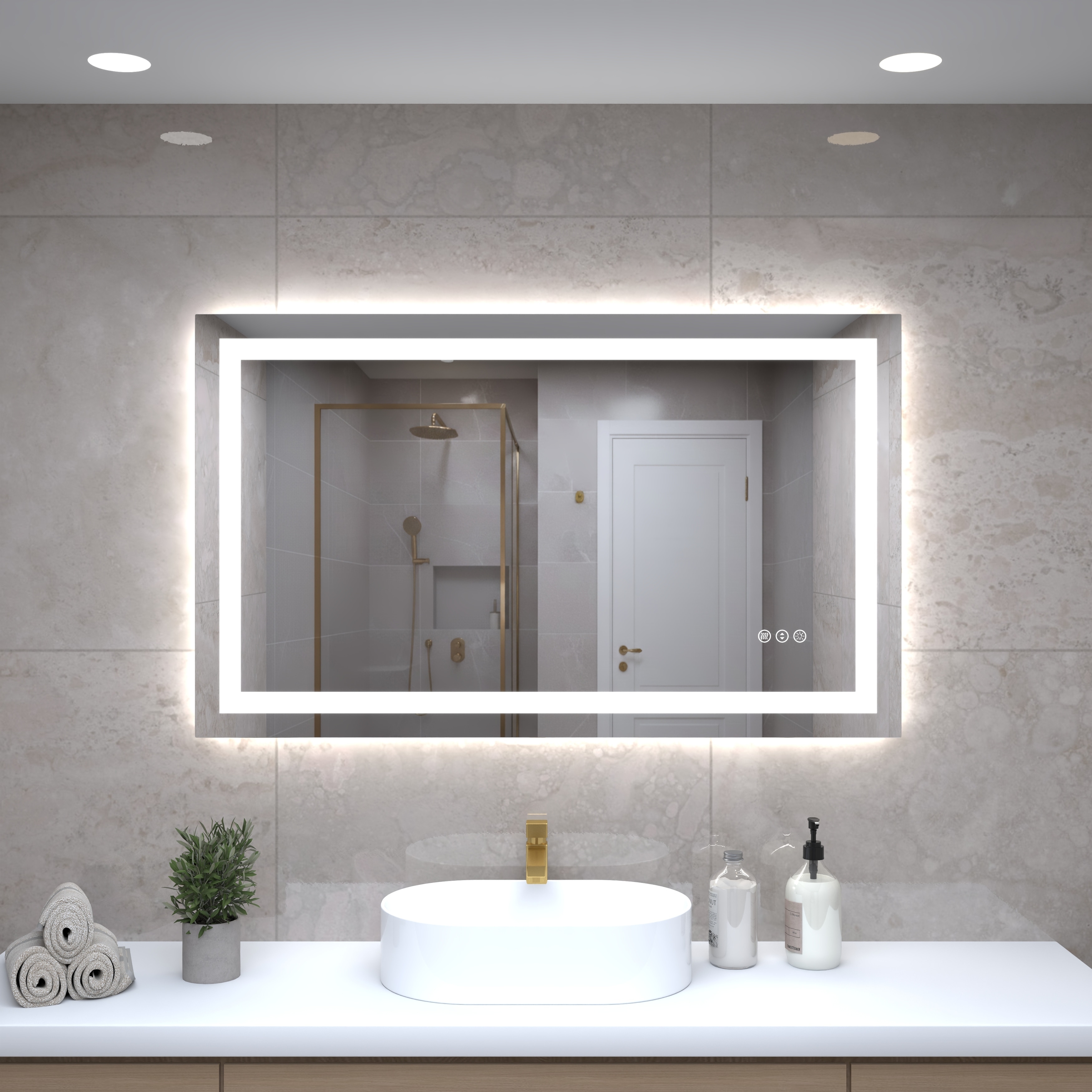 LED Bathroom Mirror with Front and Backlight, Large Dimmable Wall Mirrors with Anti-Fog, Memory, 3 Colors, LED Vanity Mirror
