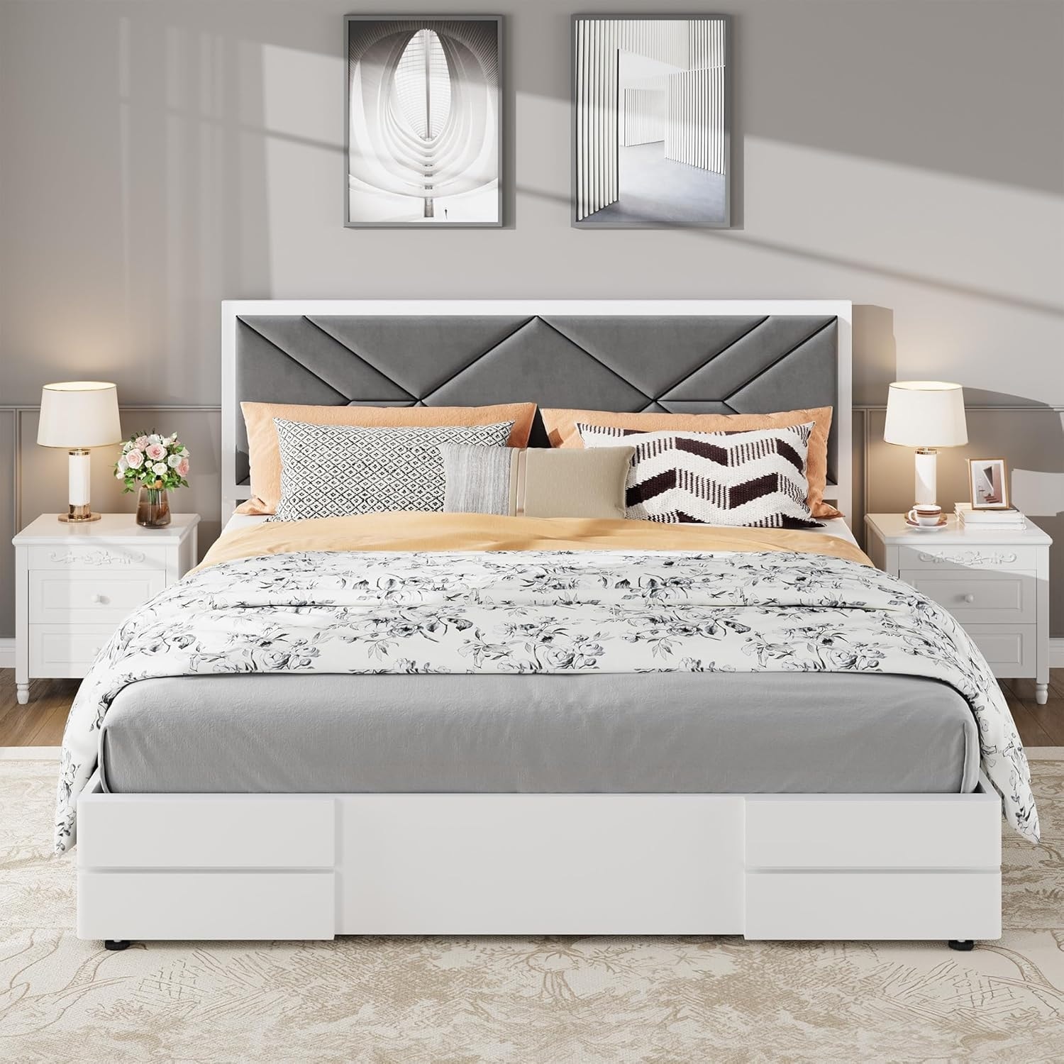 Gymax Twin/Full Size Wooden Bed Frame w/ 2 Storage Drawers & Under-bed