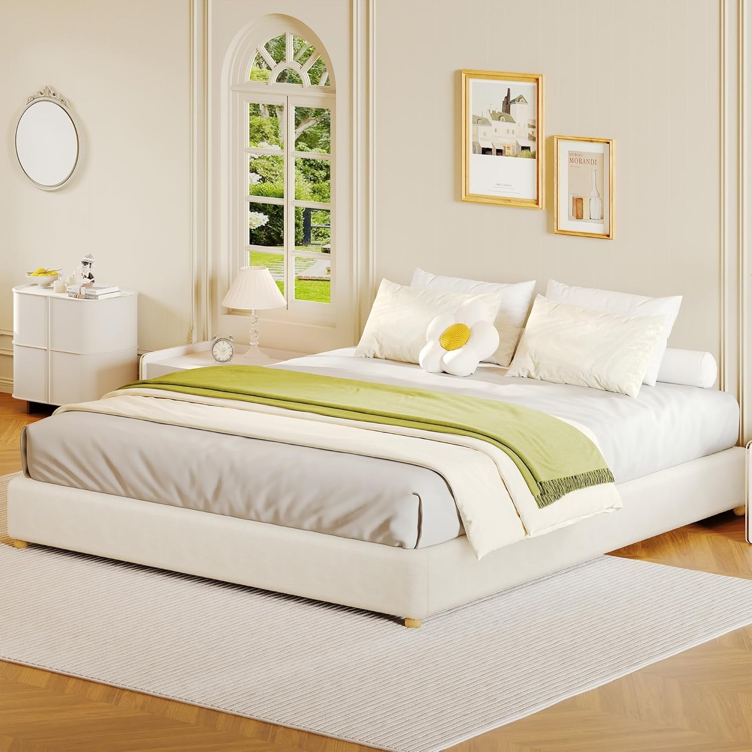 Cloud Style Teddy Fleece Bed Frame, Low Profile Platform Bed Without Headboard, Thick Boucle Fabric Upholstered Base