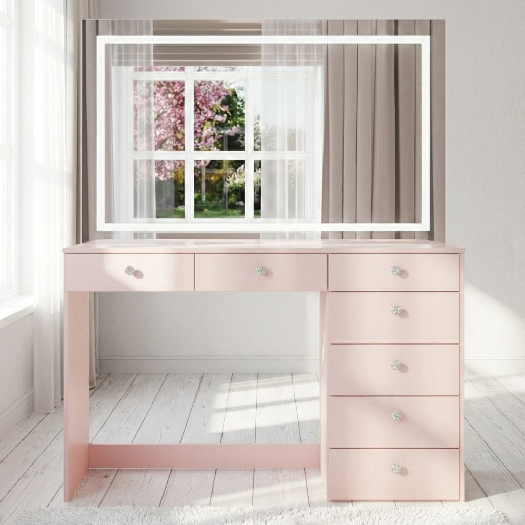 Vanity Dresser with Mirror and Stool Set Storage Drawers Luxury Furniture