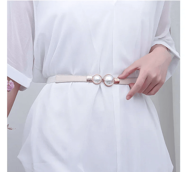 Elegant Vintage Pearl Waist Chain Elastic Slim Belt black