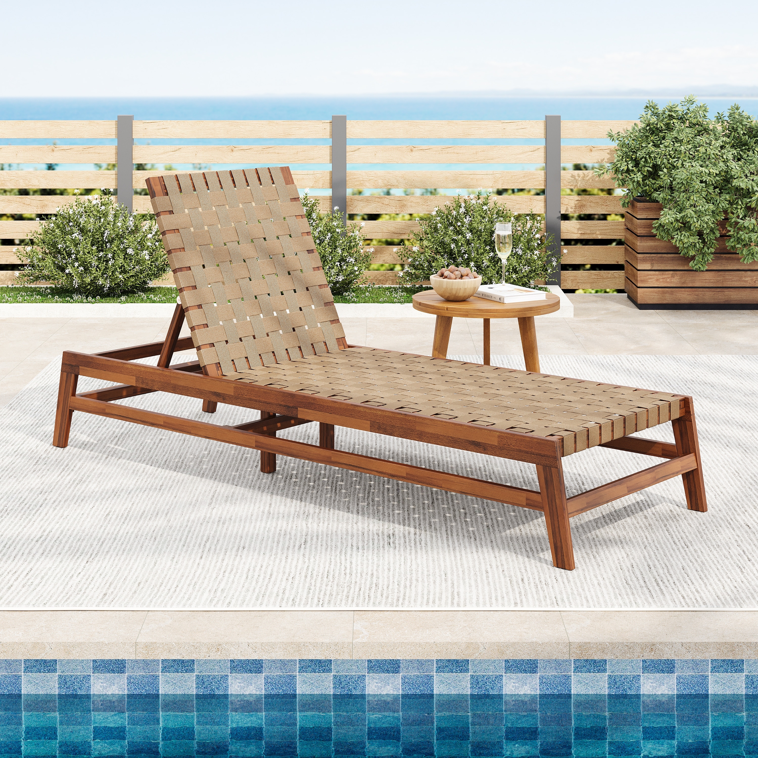 Roomfitters Outdoor Rope Chaise Lounge Chair, Adjustable Pool Recliner with Acacia Frame