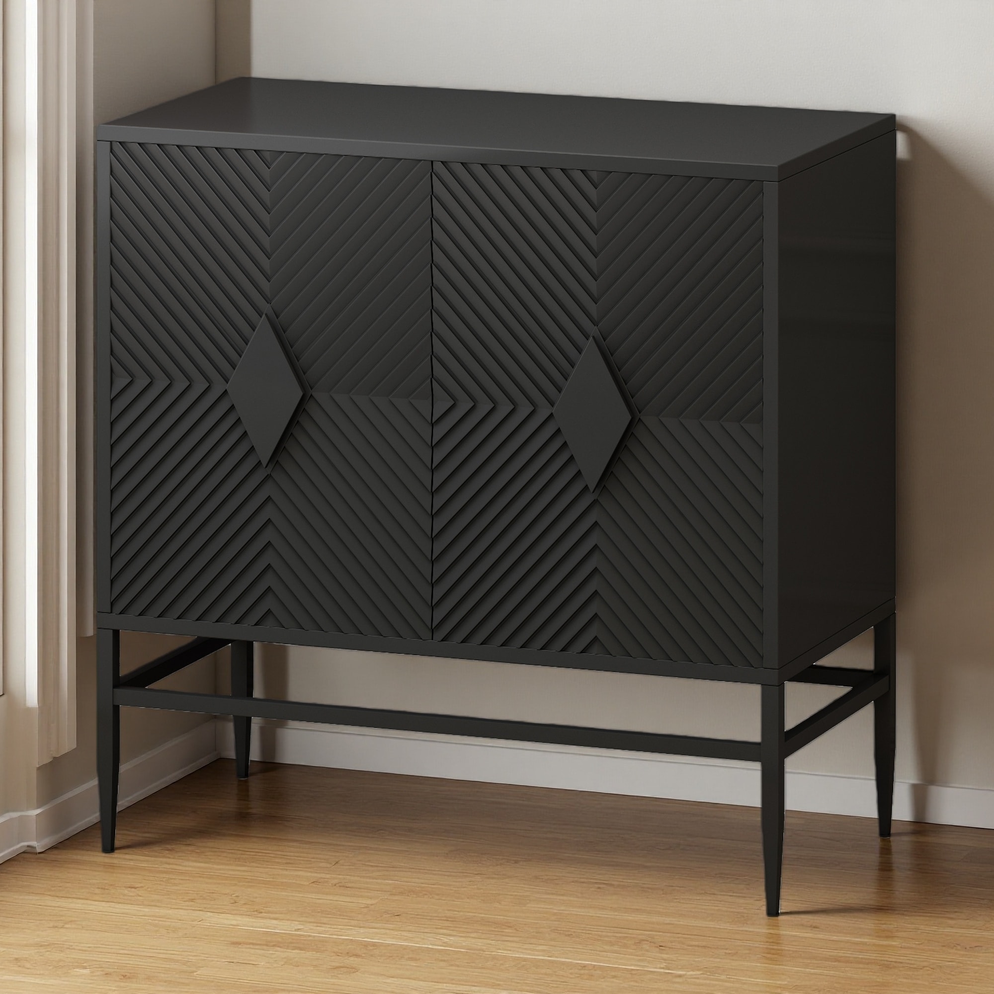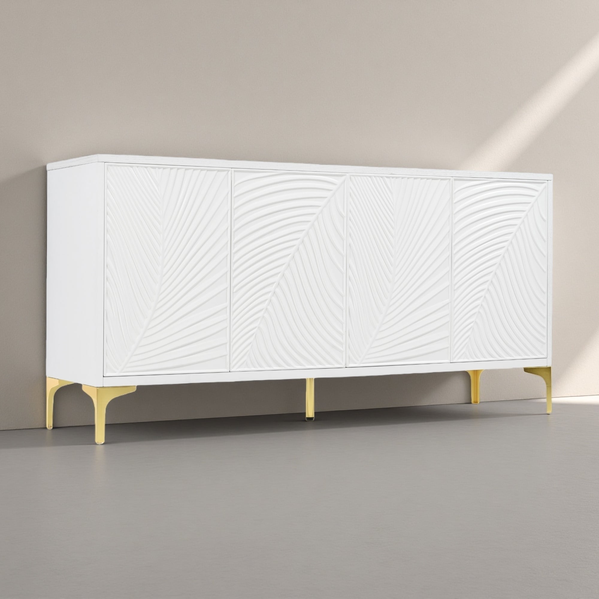 59.84" MDF & Solid Wood 4-Door Storage Cabinet with Carved Texture