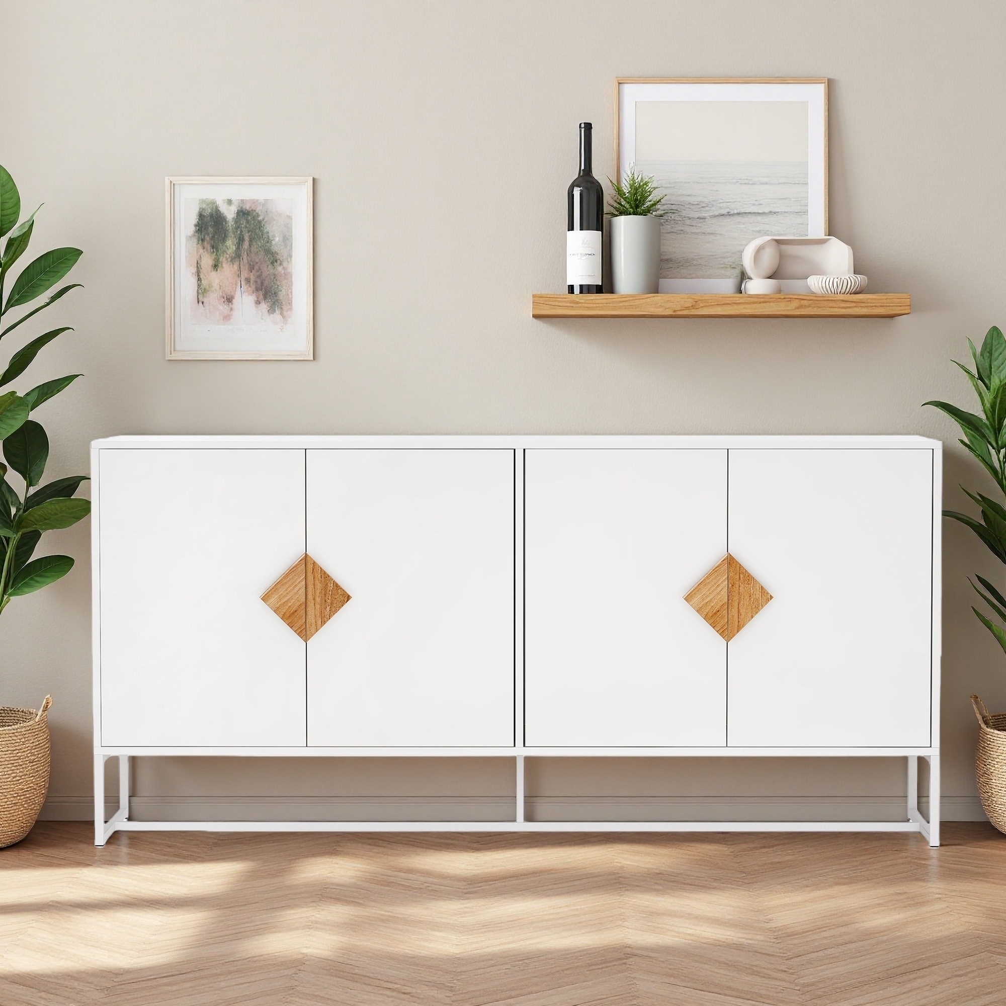Minimalist Sideboard Buffer Cabinet Credenza Storage Cabinet Accent Kitchen Storage Cabinet with Adjustable Shelves