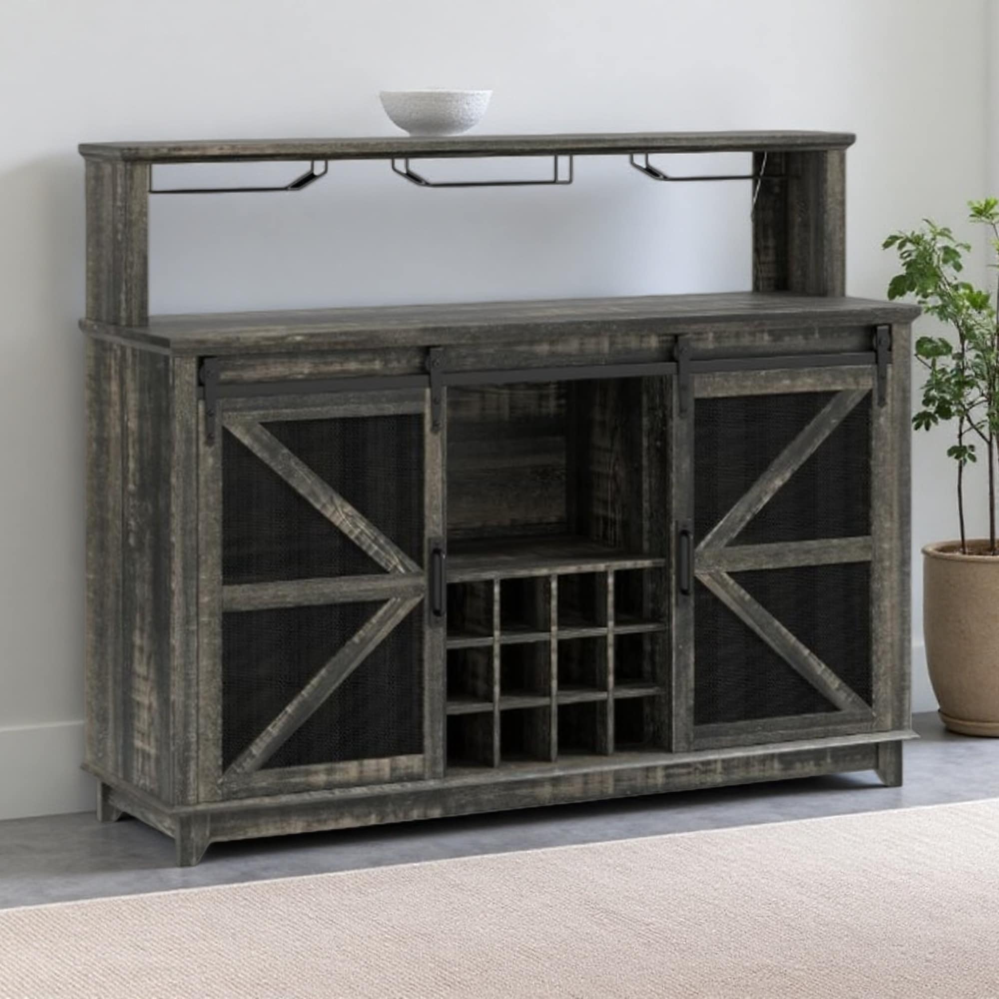 55.1" Farmhouse Wine & Coffee Bar Cabinet with Adjustable Shelves, 12-Bottle Wine Rack, Glass Holders, Sideboard for Kitchen