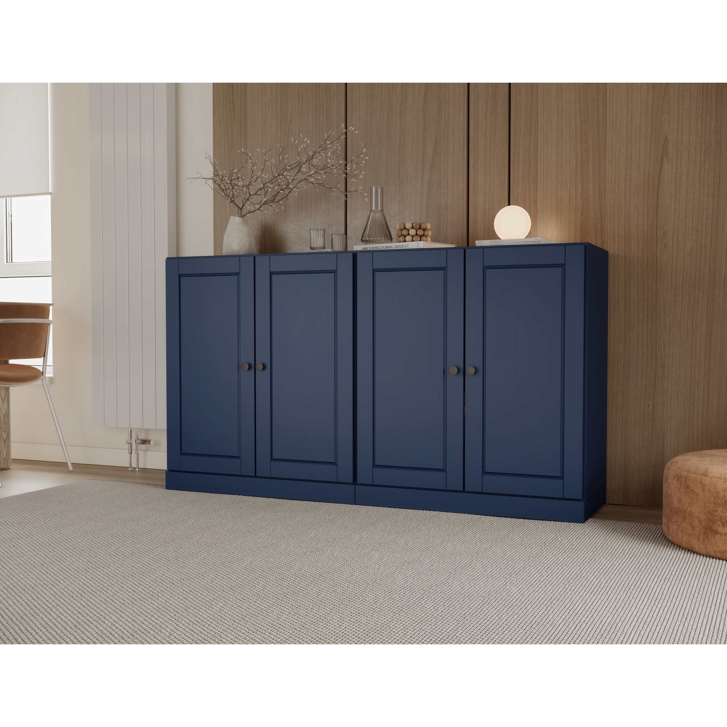 4-door Curved Corner Design Wavy Door Panel Cabinet with Adjustable Shelves, Suitable for Study, Living Room
