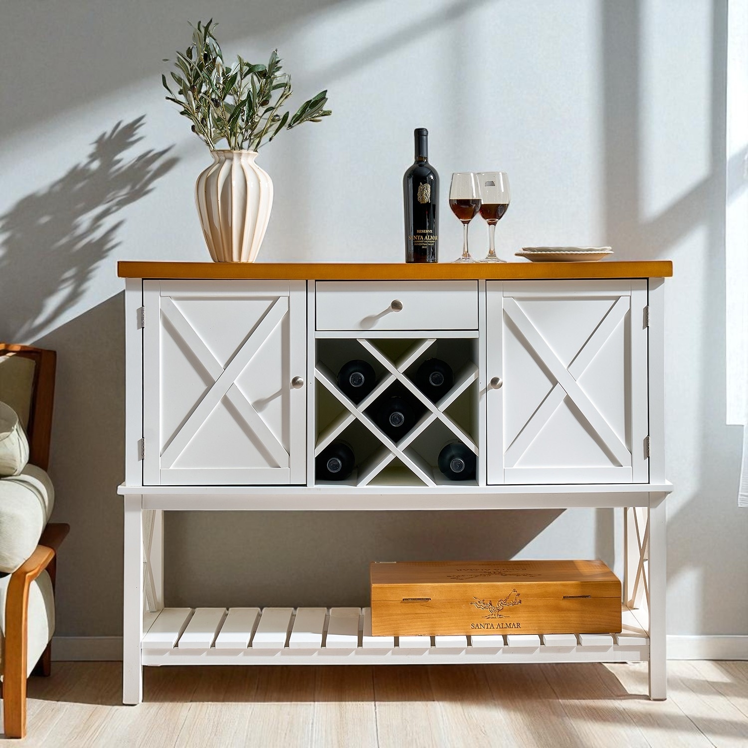 70'' Tall Farmhouse Coffee Bar Cabinet, Wine Bar Cabinet