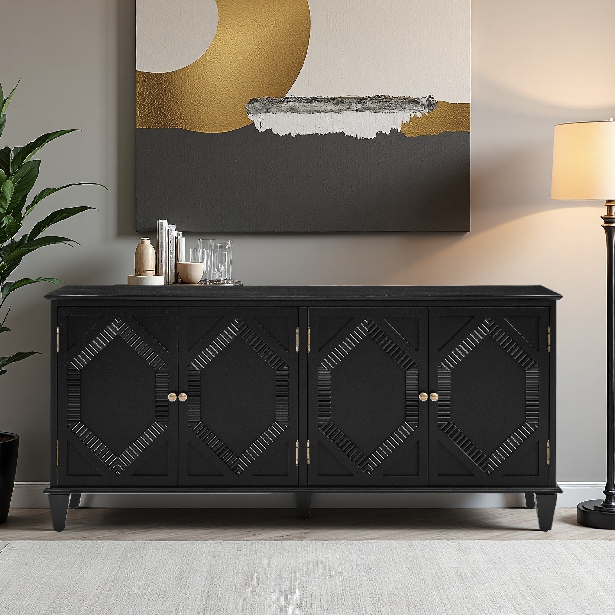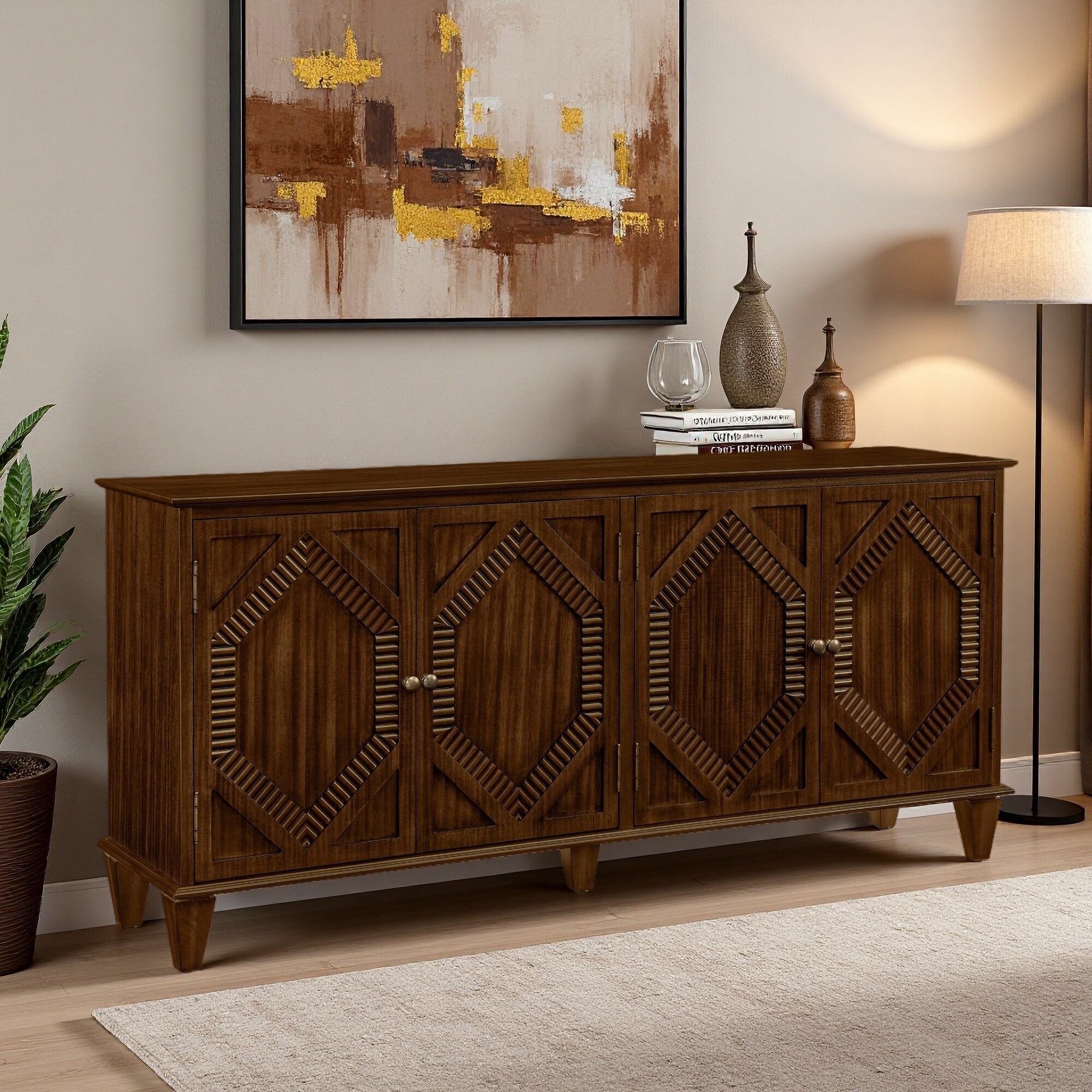 65.2" Mid-Century Sideboard with Geometric Design & Storage