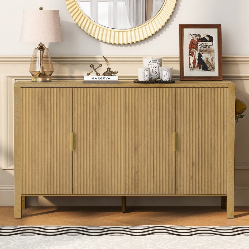 Modern 57.5" Fluted Door 4-Door Sideboard with Side Hooks and Adjustable Shelves