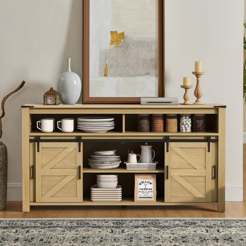 Farmhouse 59.3" Sideboard Buffet with Sliding Barn Doors and Open Storage for Living or Dining Spaces