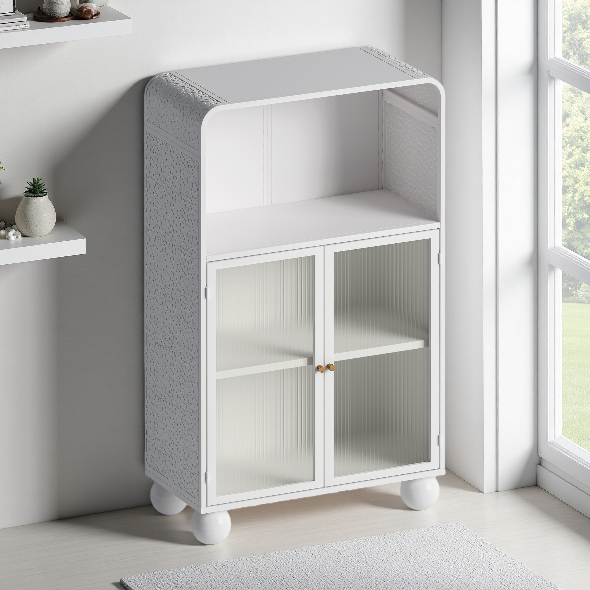 Joey Mid Century Modern Storage Cabinet, Arched Accent Cabinet with Rounded Bottom Edges and Integrated Door Pull Cutouts