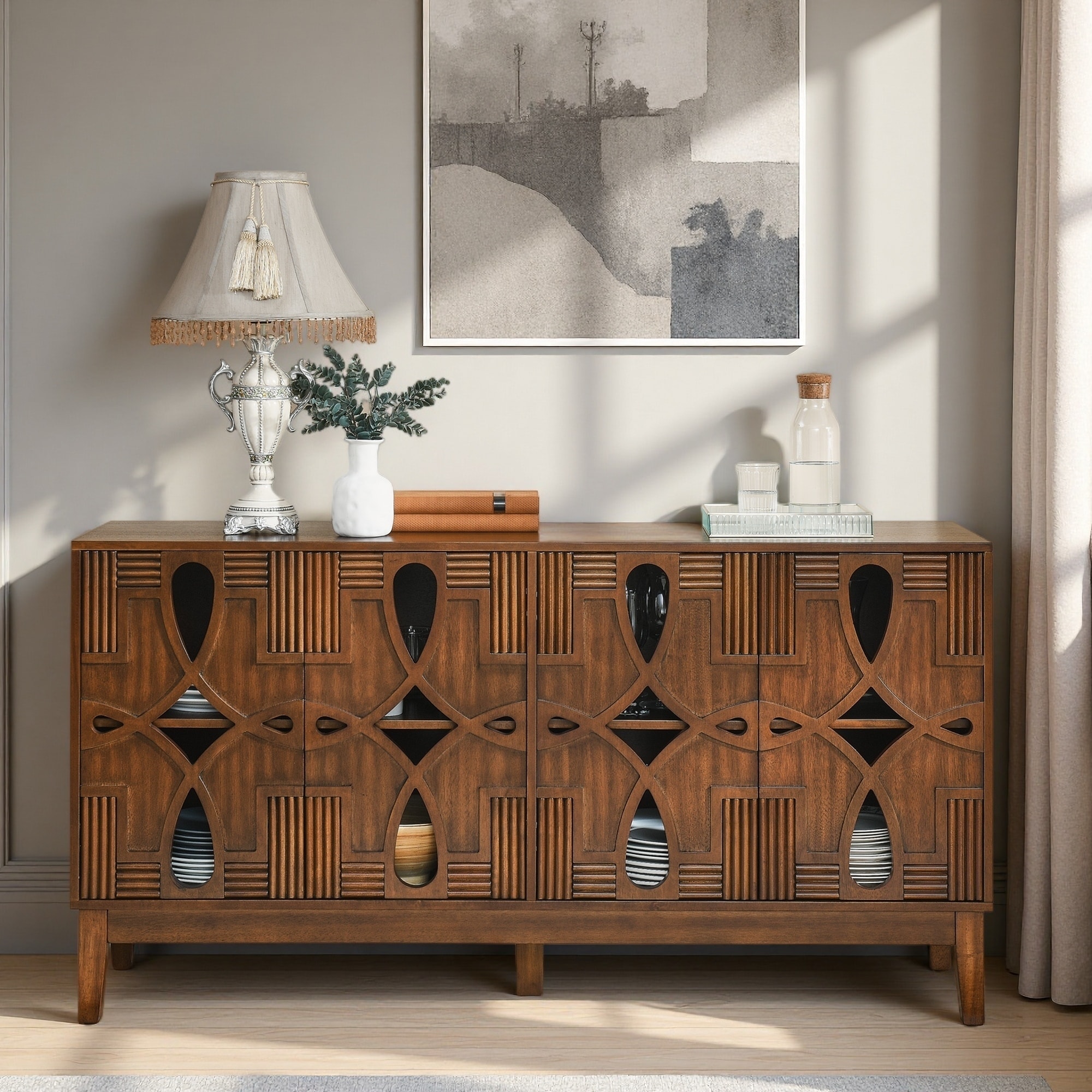 60.5" Mid-Century Modern Sideboard with 4 Doors & Shelves