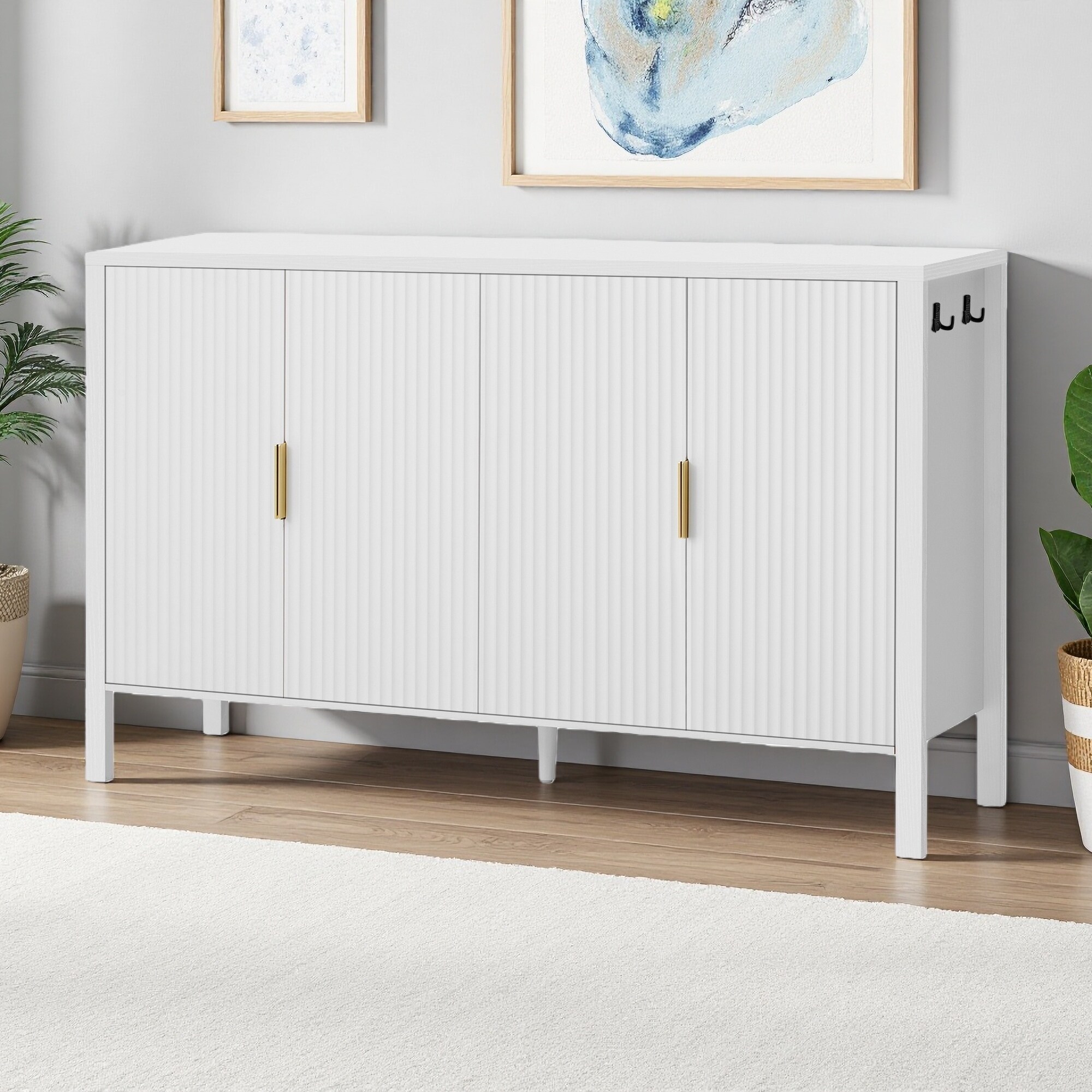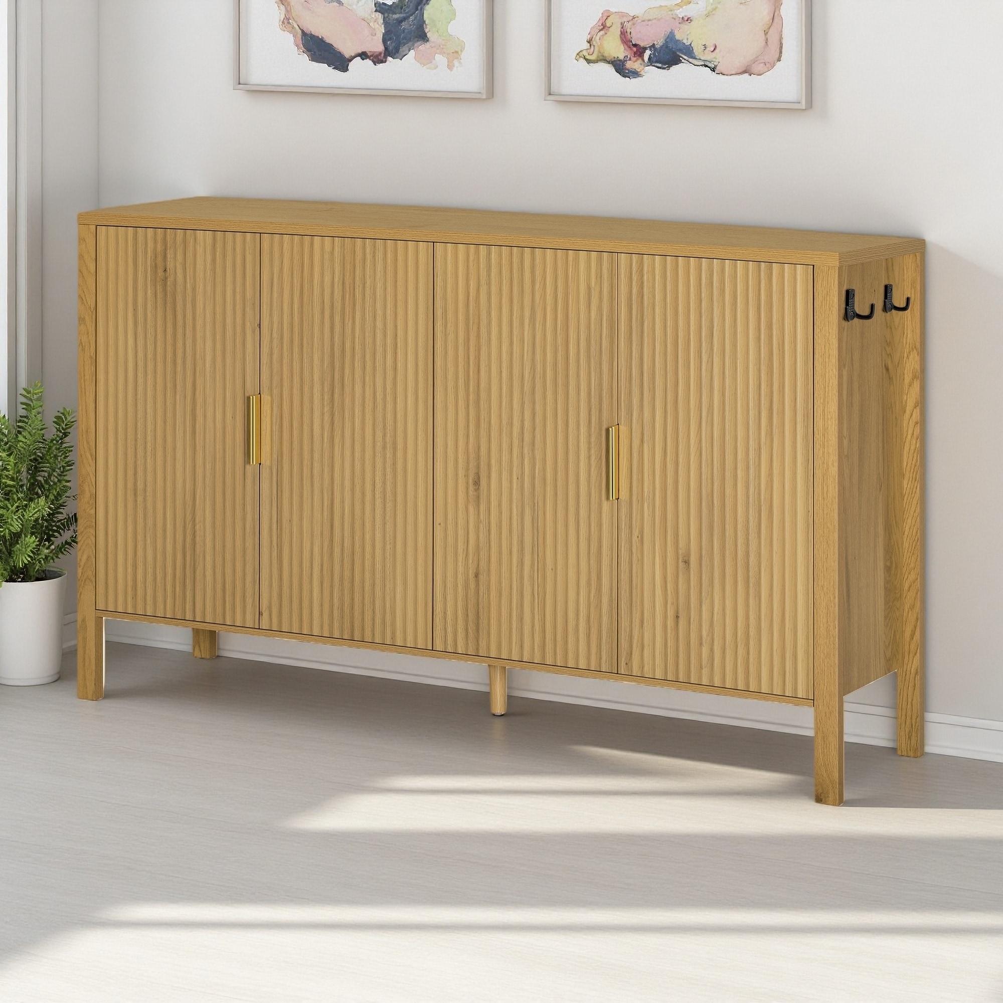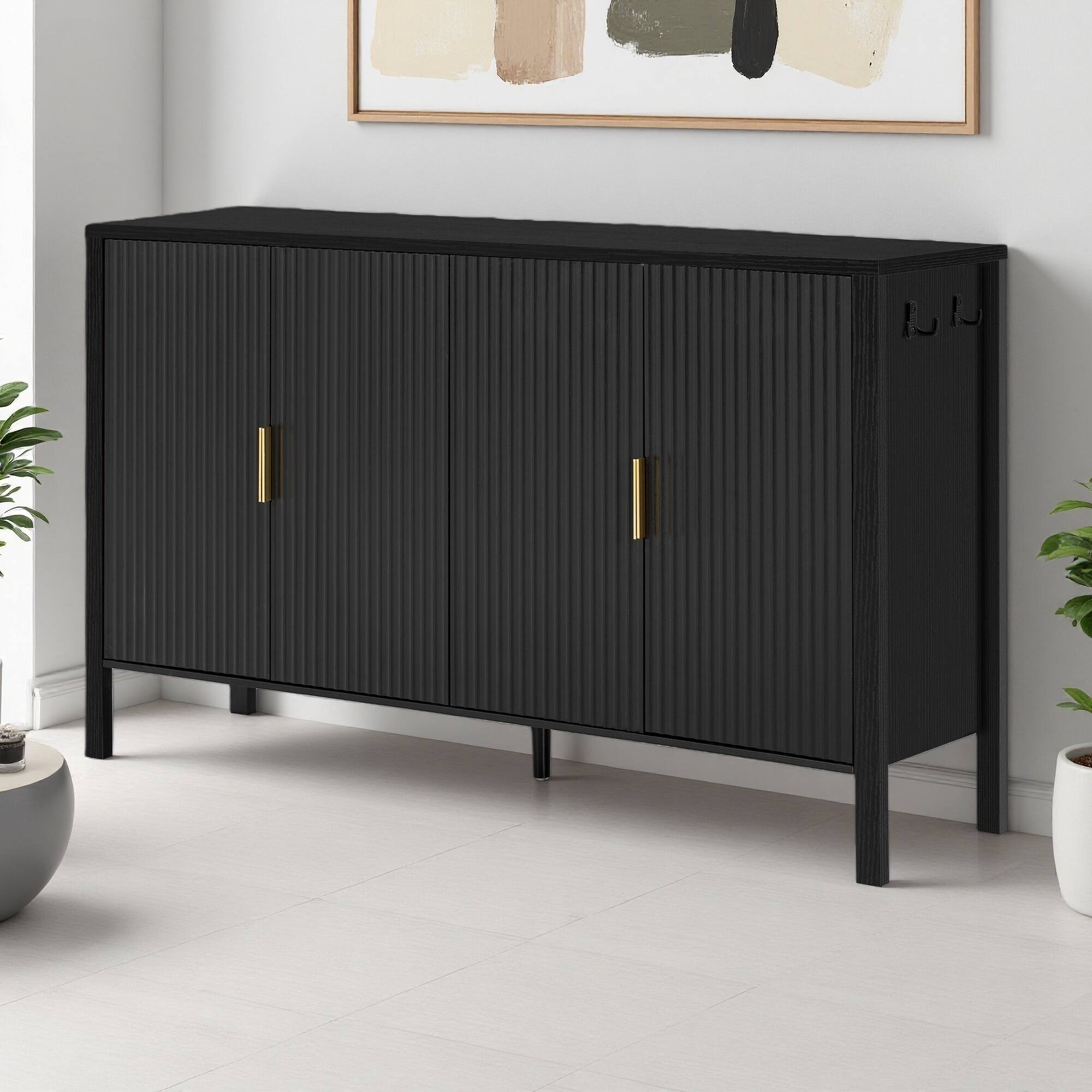 57.5" Modern Stripe Door Sideboard with Hooks & Adjustable Shelves