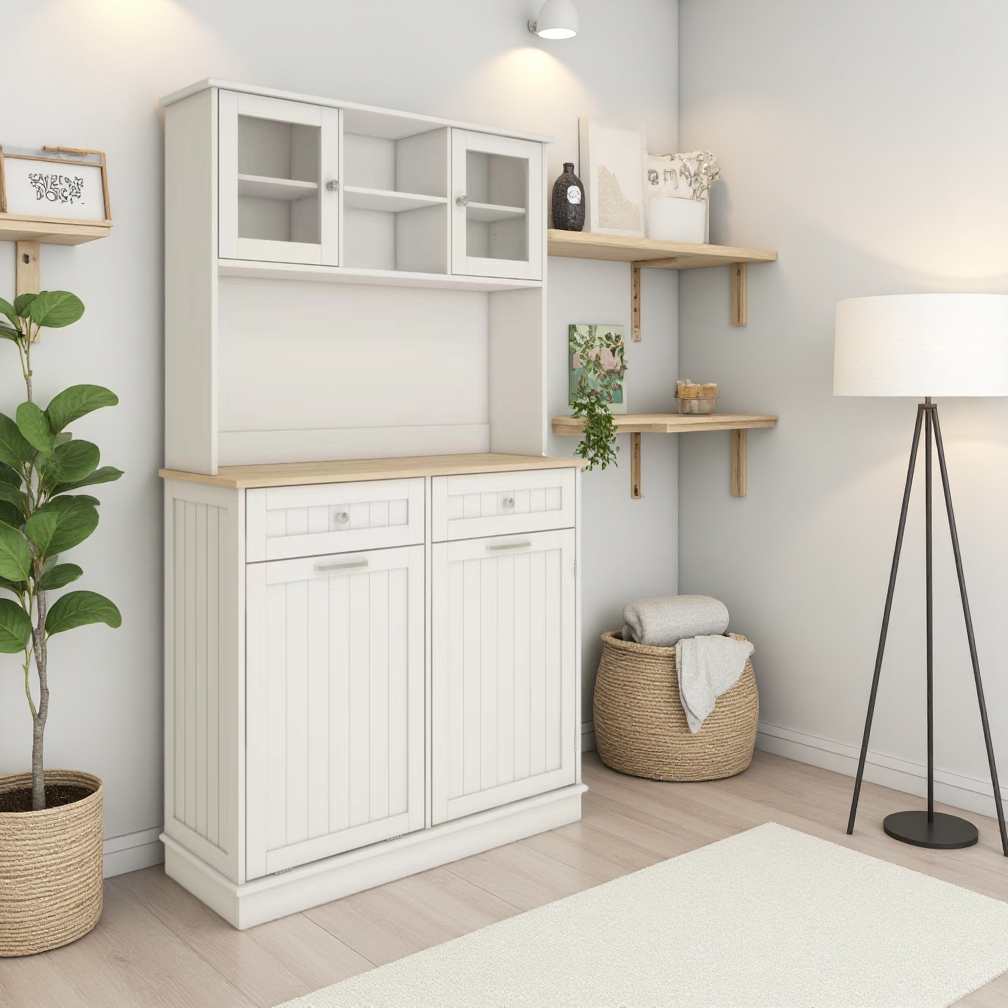 67.7" Tall Kitchen Trash Cabinet with Tilt-Out Bin & Adjustable Shelves