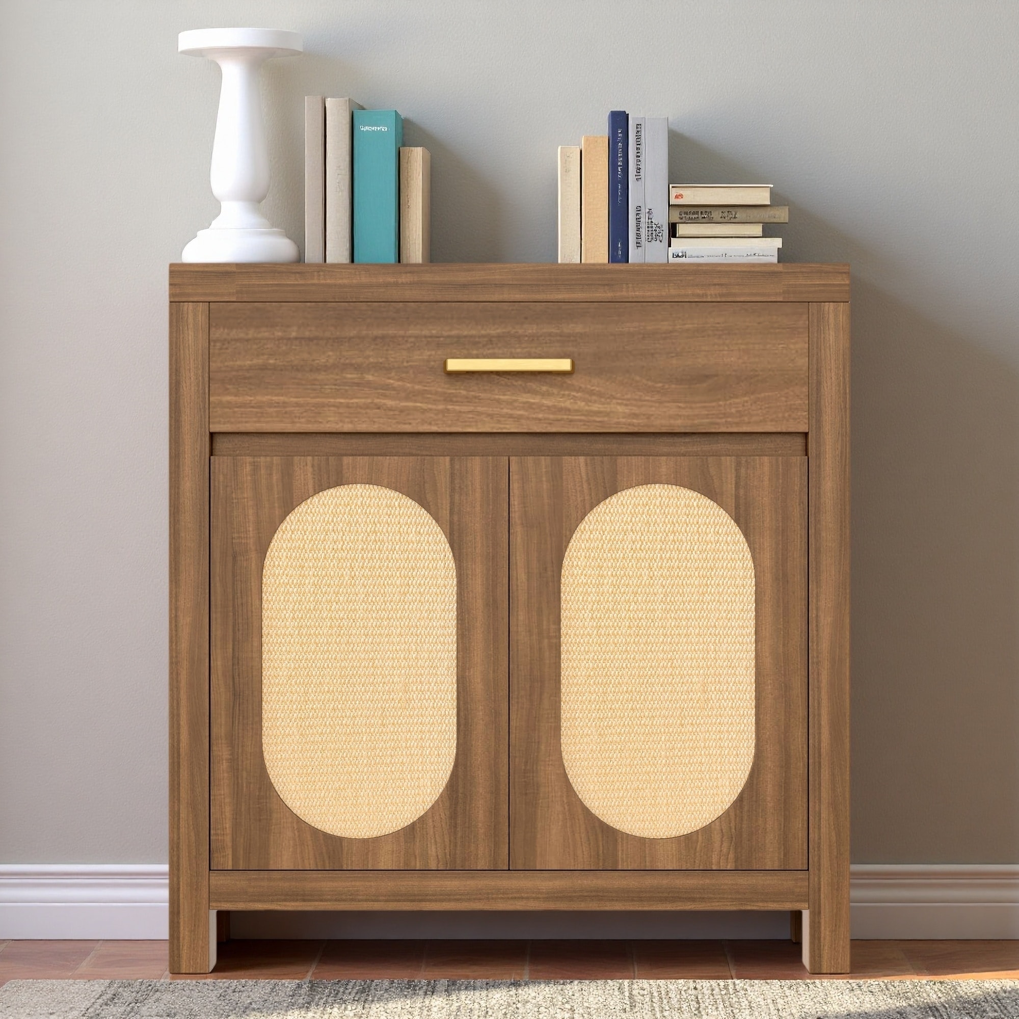 26.75" Modern MDF & Rubberwood Kitchen Cabinet with 2 Drawers, Double Doors and Adjustable Shelf for Coffee Bar, Living Room