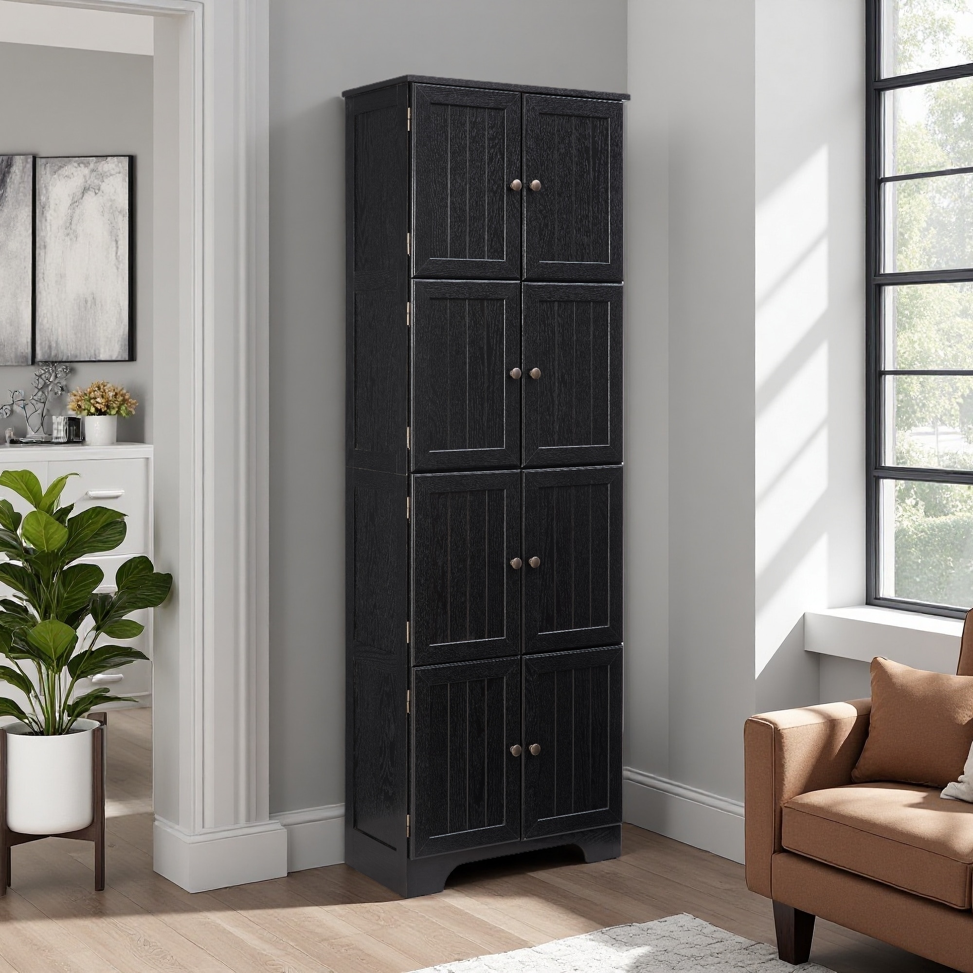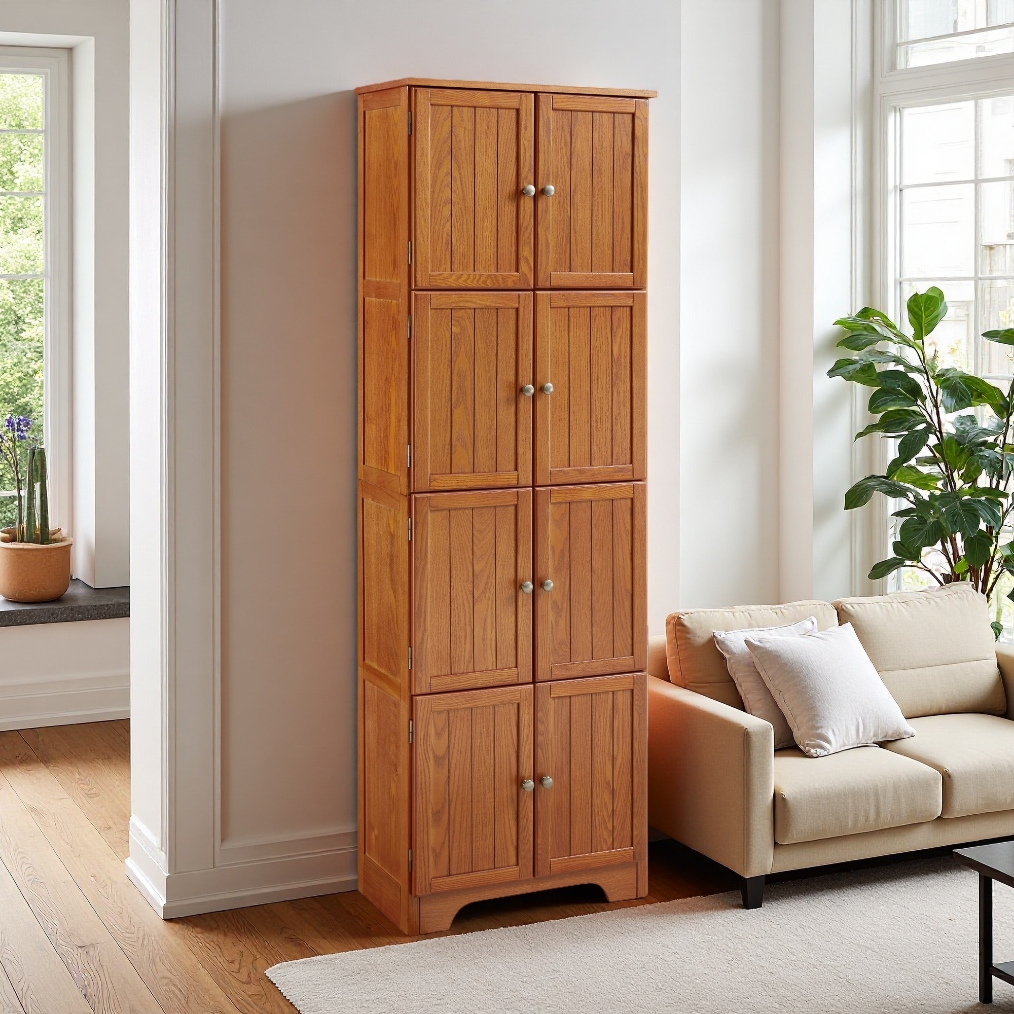 Freestanding Tall Cabinet with 8 Doors and 4 Shelves
