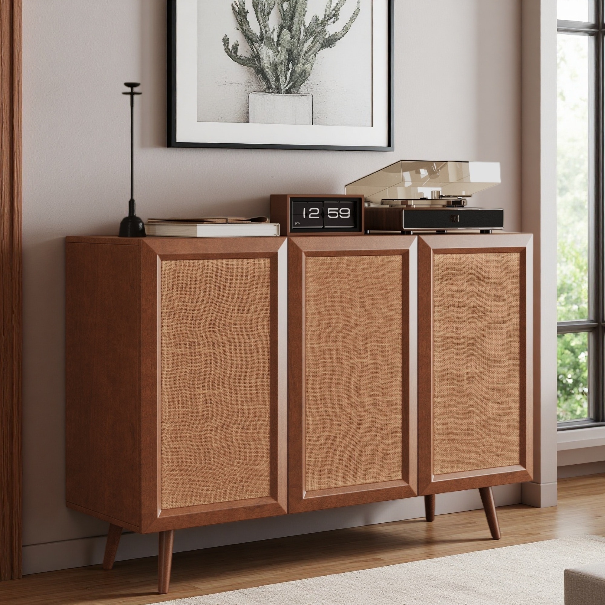 59.84" Retro Sideboard with Rattan & Glass Doors