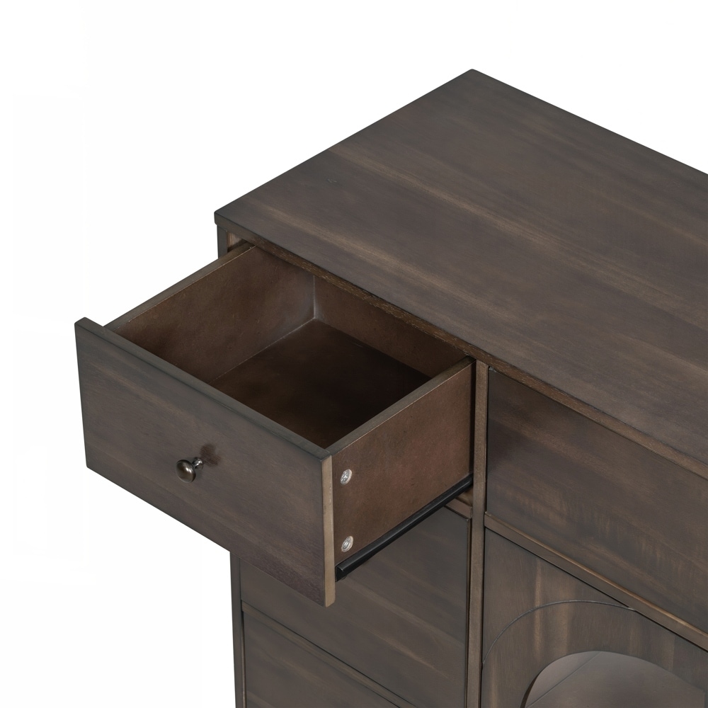 34.3 Inch Modern Wavy Sideboard Cabinet, 2 Door Curved Storage Console with Wood Grain Top