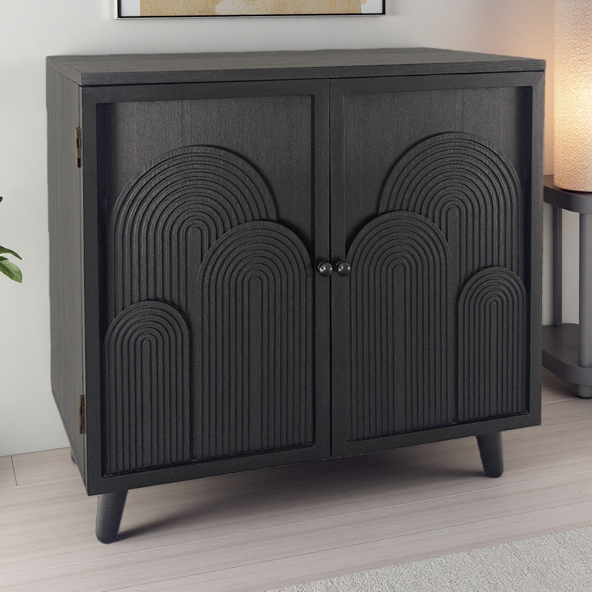 31" Modern Wood Storage Cabinet with Embossed Door, 2-Shelf Accent Cabinet for Living Room, Bedroom, or Entryway