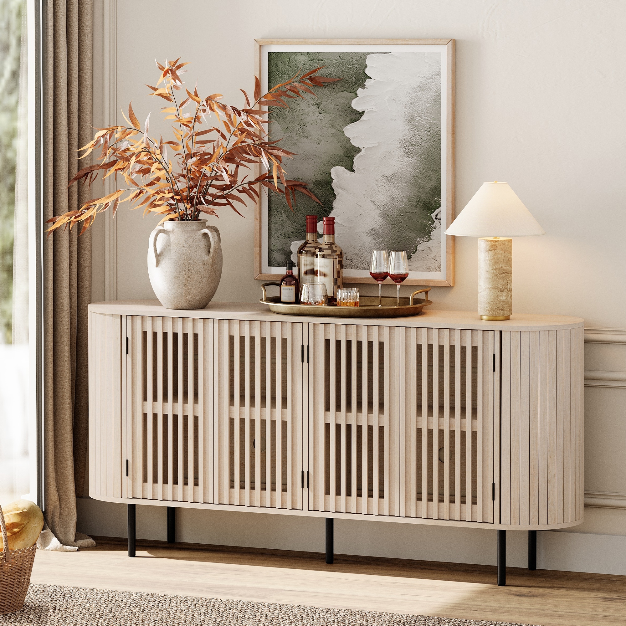 WAMPAT 66" Sideboard Buffet Cabinet, Fluted Accent Storage Cabinet