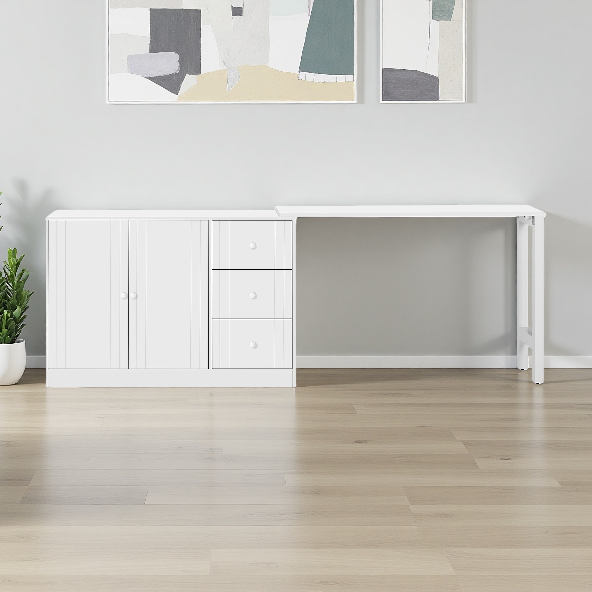 89.7" Extendable Sideboard with Table, Drawers & Adjustable Shelves
