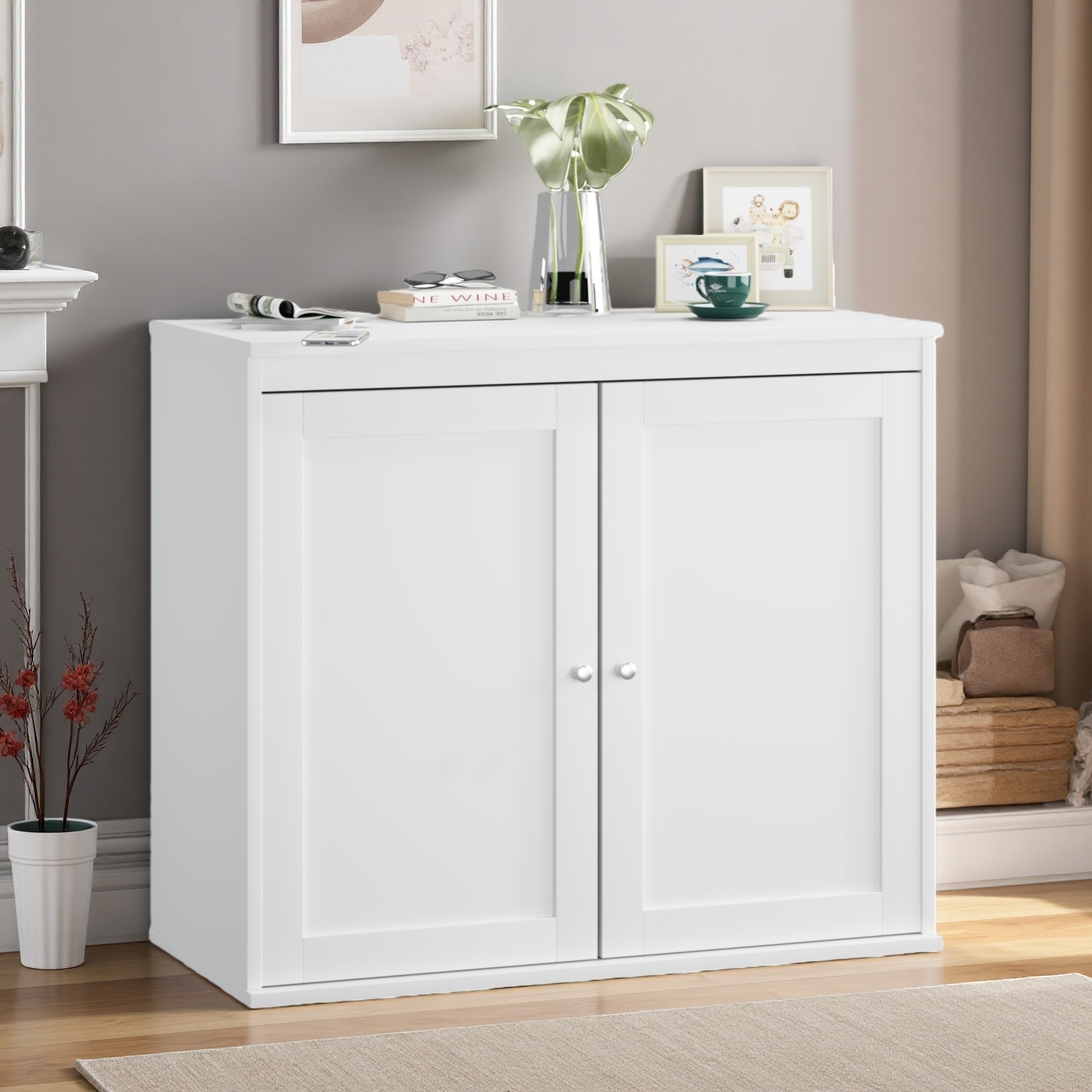 Multipurpose Pantry Cabinet with 2 Door and Adjustable Shelves, Freestanding Sideboard Buffet Cabinet for Kitchen