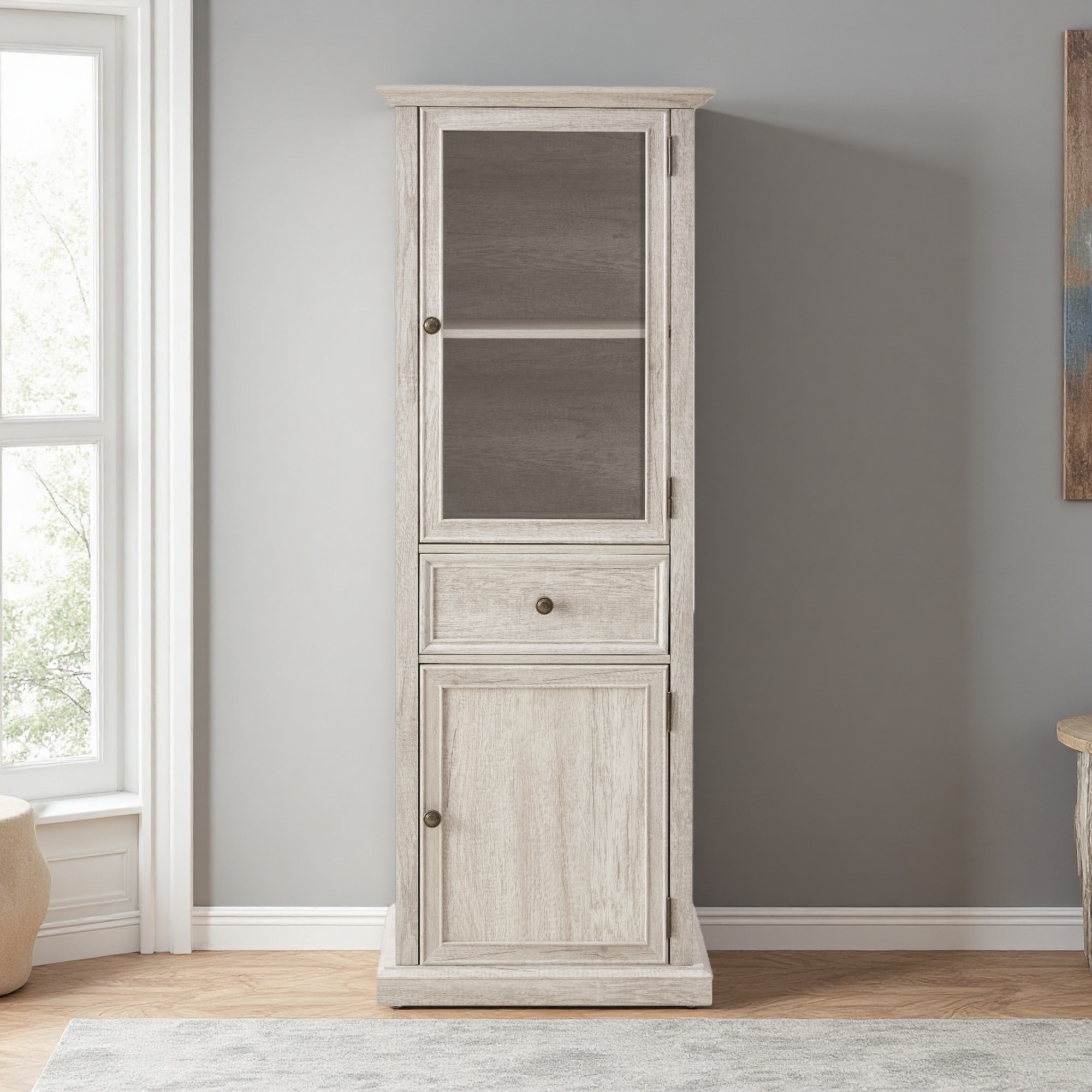 Tall Storage Cabinet with Glass Door, Drawer and Shelves
