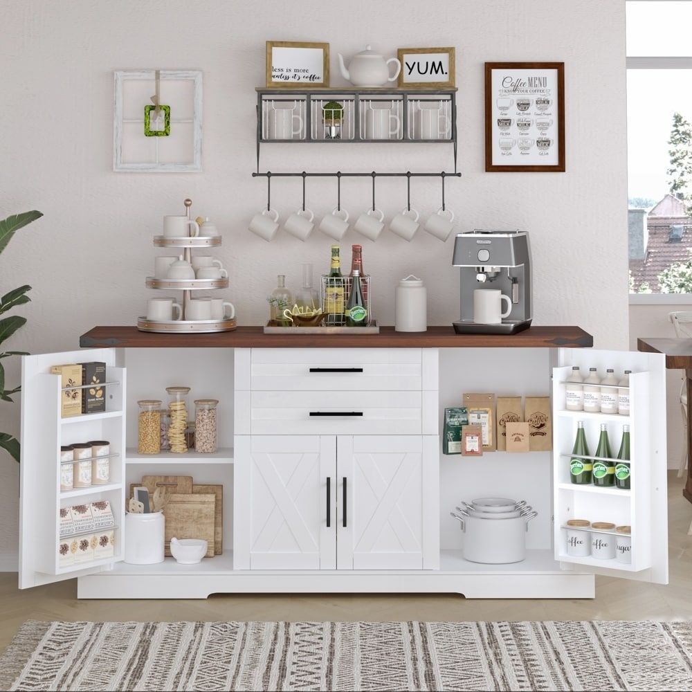 Large Buffet Table Coffee Bar Cabinets with Adjustable Shelves for Kitchen