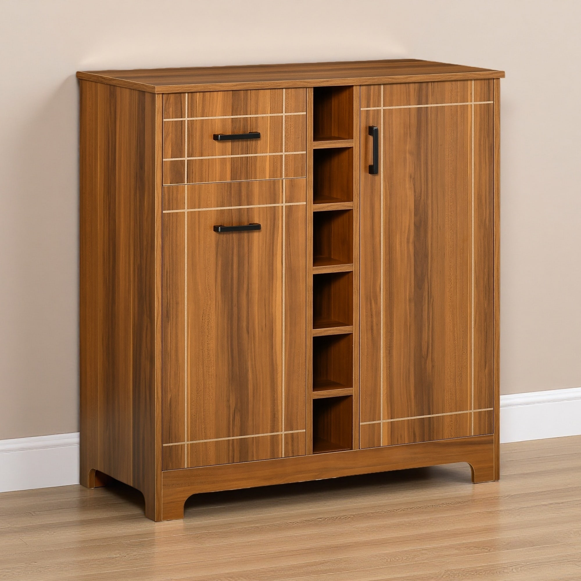 33.75" MDF Retro Wine Cabinet for 6 Bottles with Glass Holders, Drawer and Sideboard Serving Bar for Kitchen or Dining Room