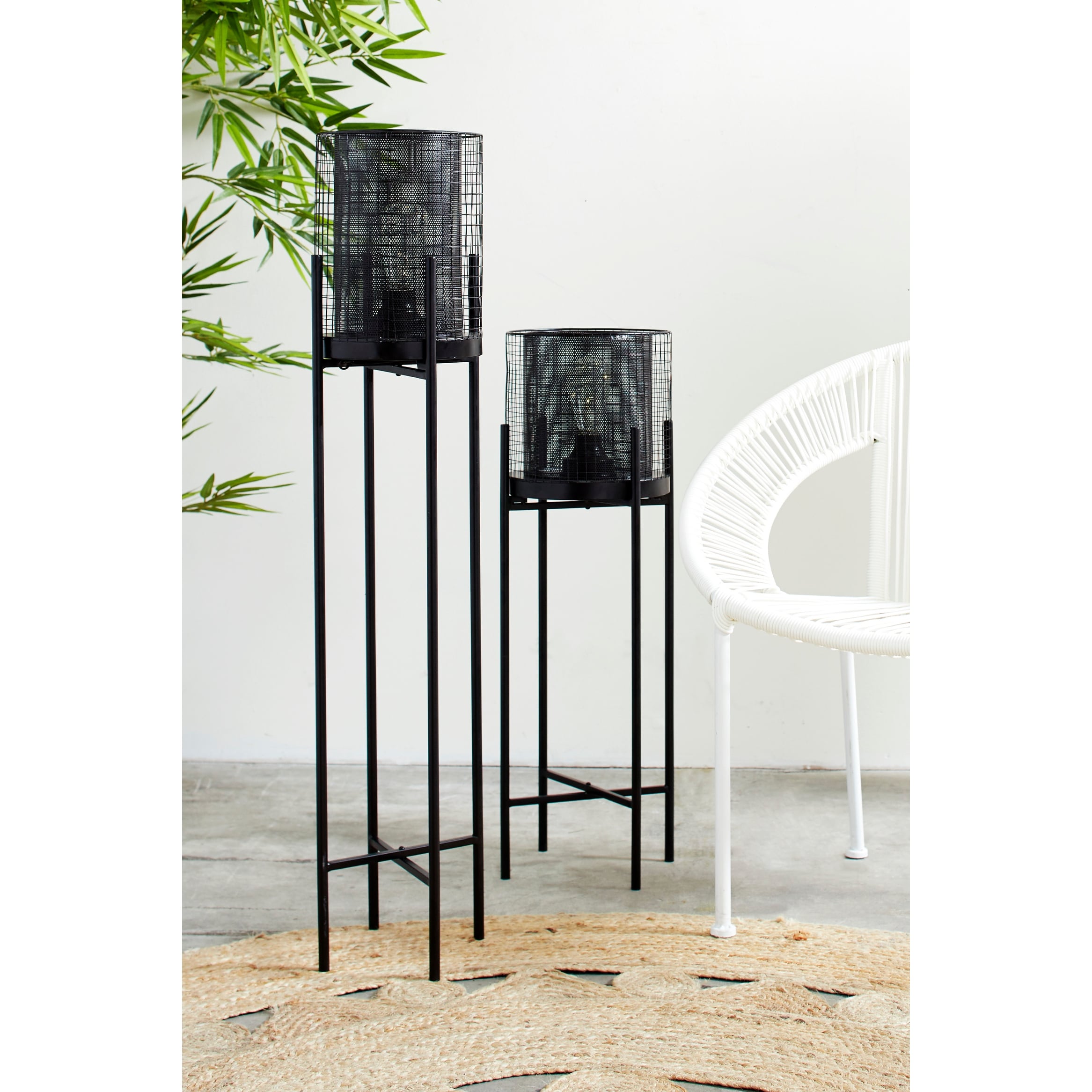 Tall Round Black Metal Mesh Lantern w/ LED Light on Metal Stand 8 x 40 - Brown - 8 x 8 x 40