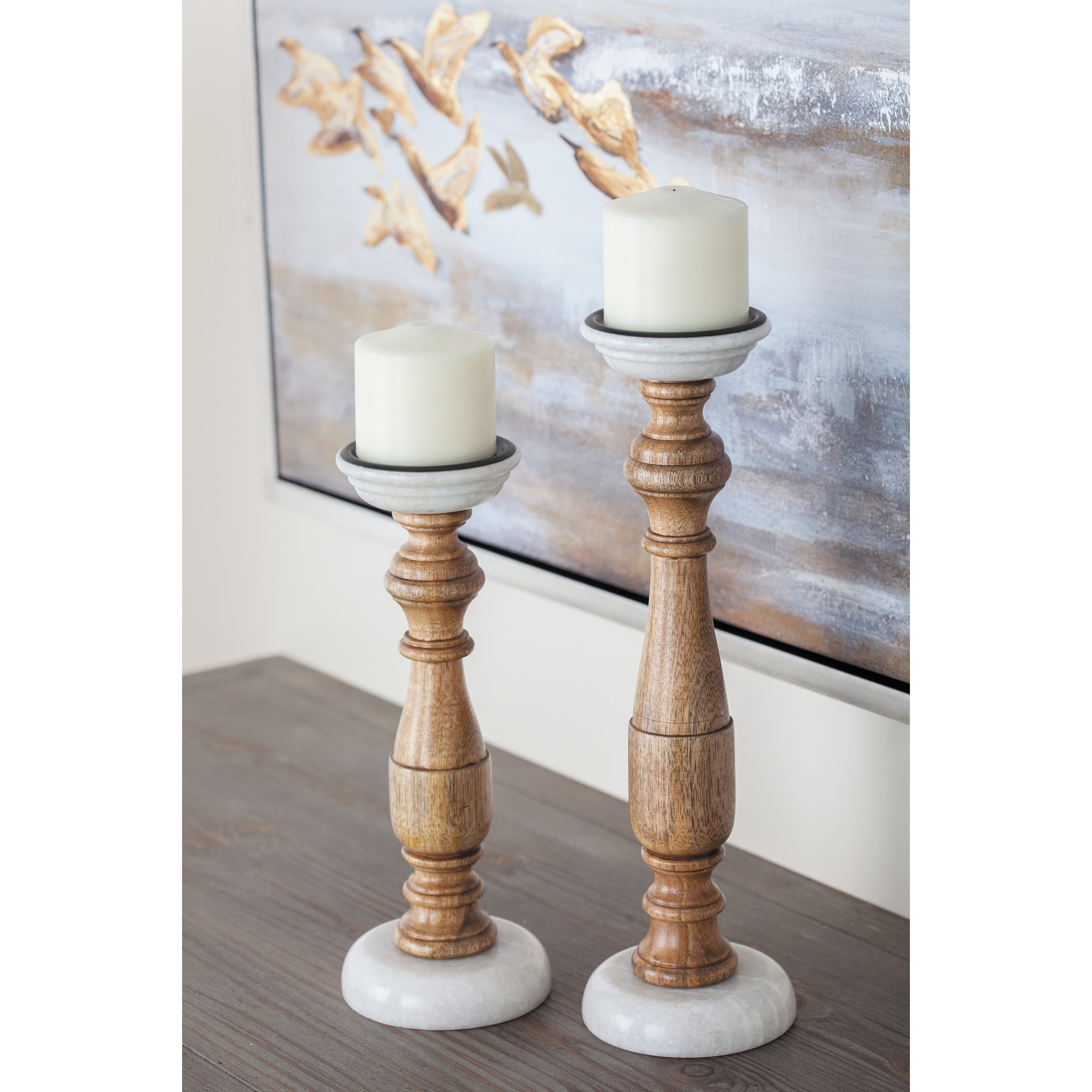 Brown Mango Wood Contemporary Candle Holder (Set of 2) - S/2 12", 15"H