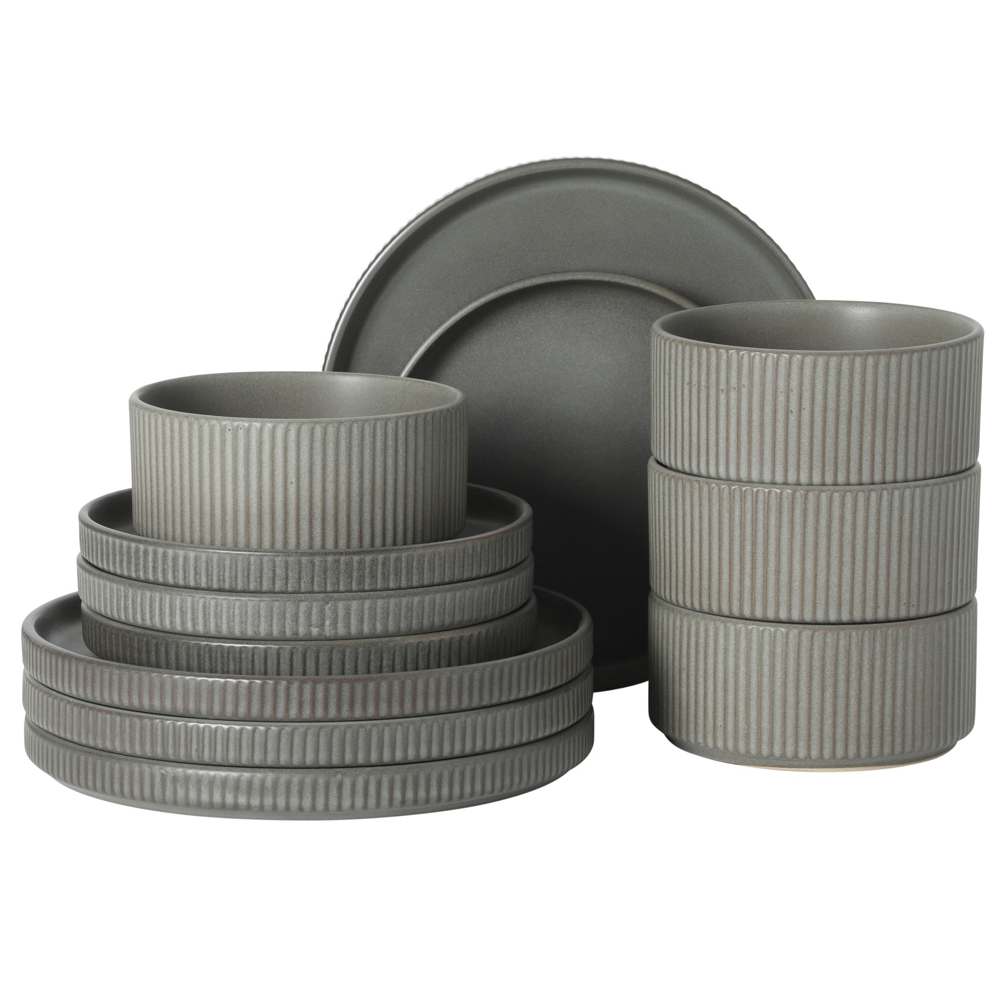 Gibson Elite 12 Piece (Service for 4) Townscape Reactive Glaze Embossed Terracotta Dinnerware Set