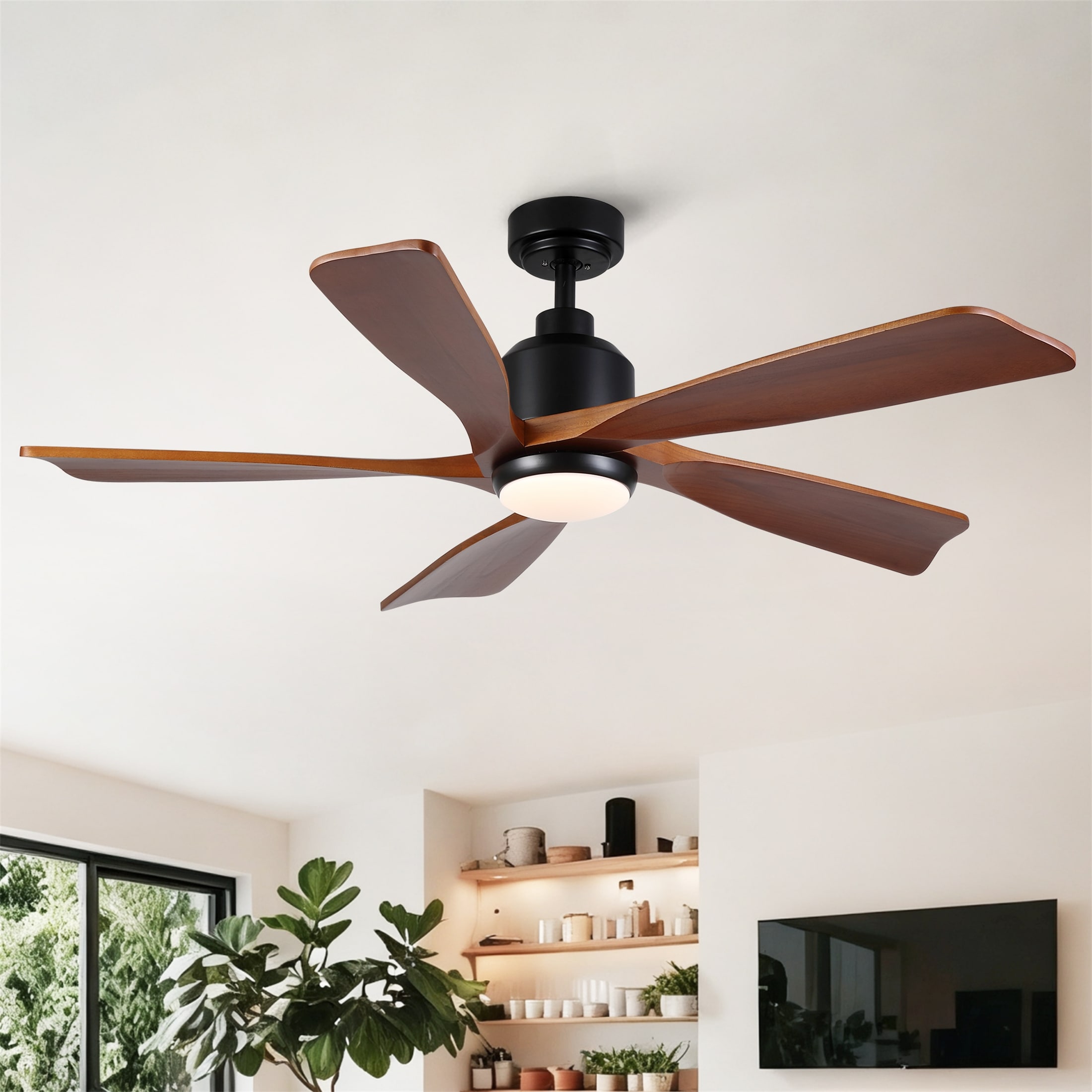 52" Modern Ceiling Fan with Light and Remote 5 Plywood Blades 3 Color LED for Bedroom Living Room Patio - 52 Inches