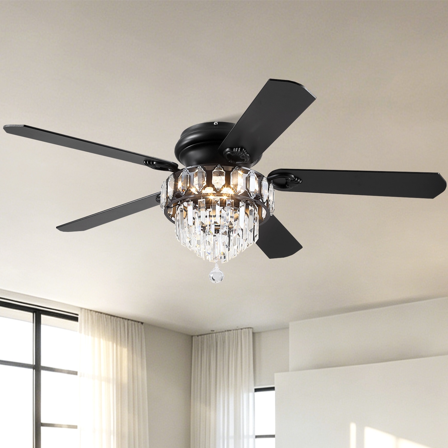 BreezeLite 52" 5-Blade 4-Light Matte Black Crystal Ceiling Fan