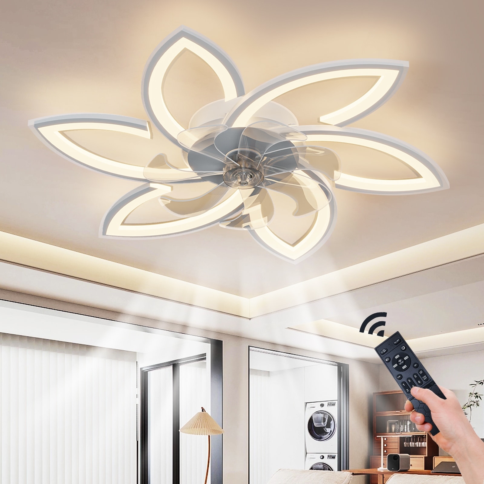 30in Modern Low Profile Dimmable Flower Shape Ceiling Fan with Lights - N/A