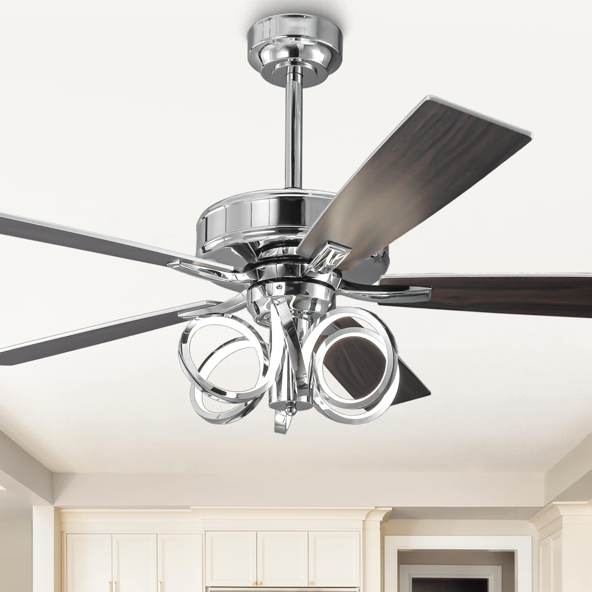 52" Modern Unique Dimmable LED Reversible Motor Ceiling Fan with Light and Remote - 52" W x 19.3" H