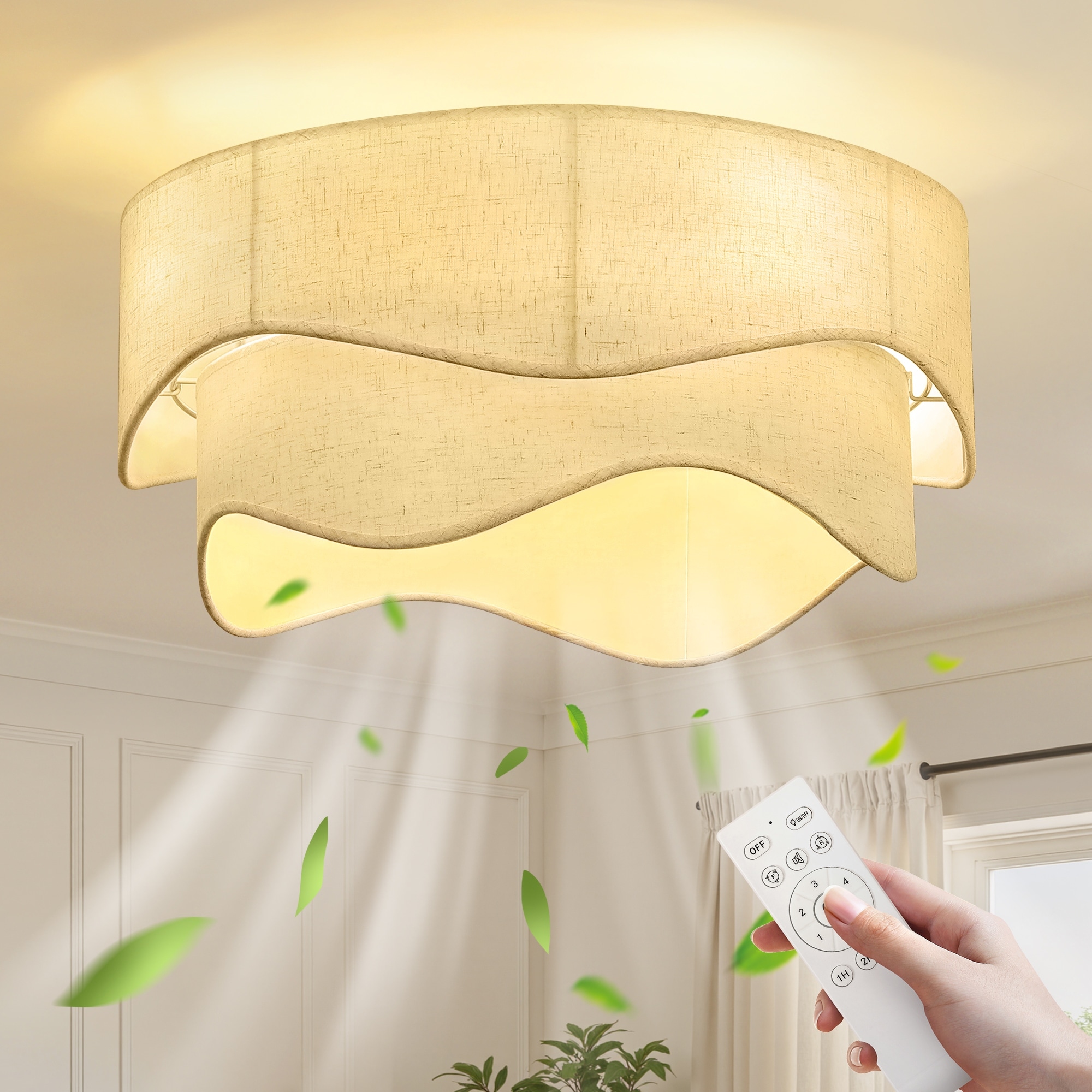 Quiet Reversible DC Motor with 3-Speed Timer and 3 Color-Changing Lights, Wood Ceiling Fan with Lights and Remote