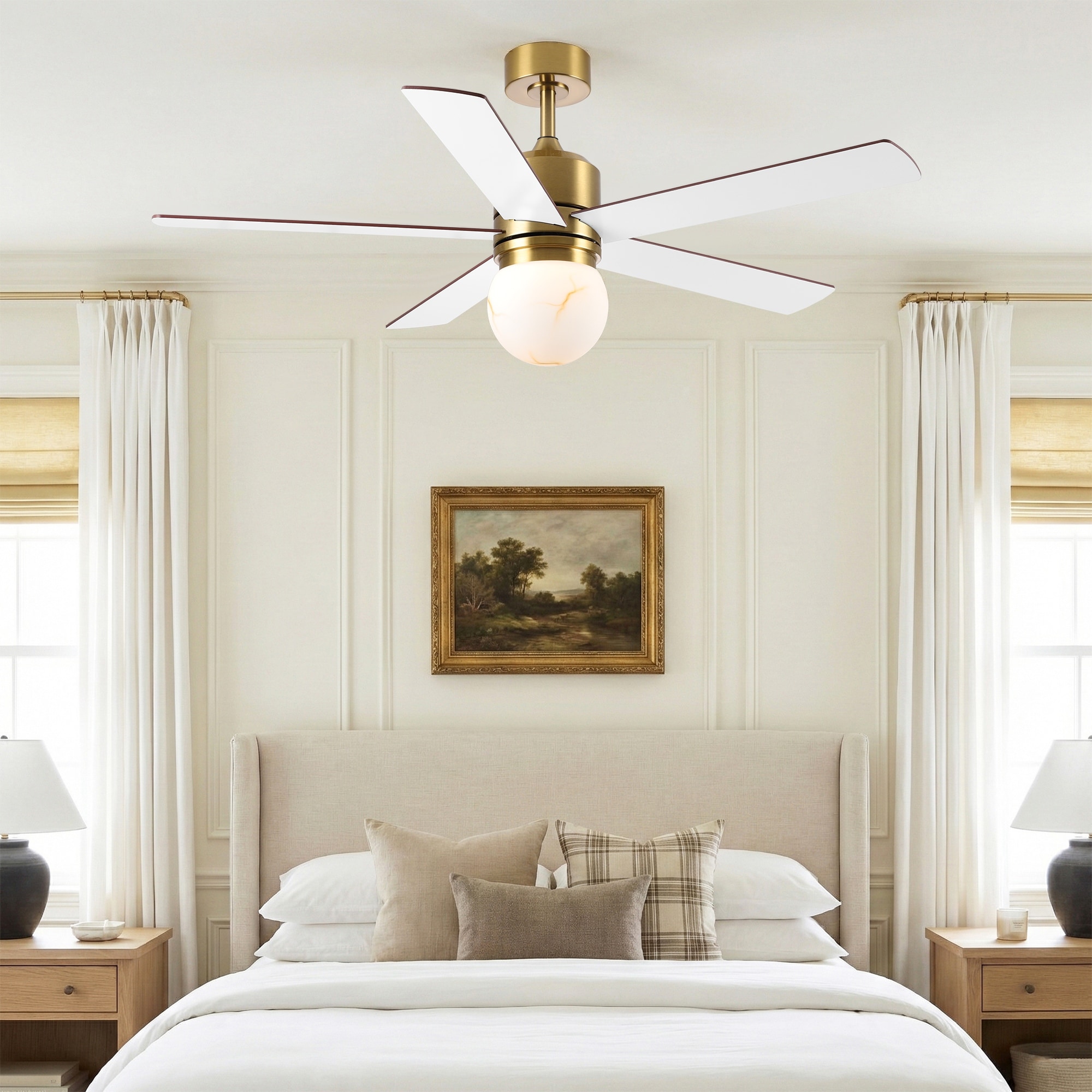 52" Brushed Gold Bubble Glass Modern Dimmable Ceiling Fan with LED Light and Remote