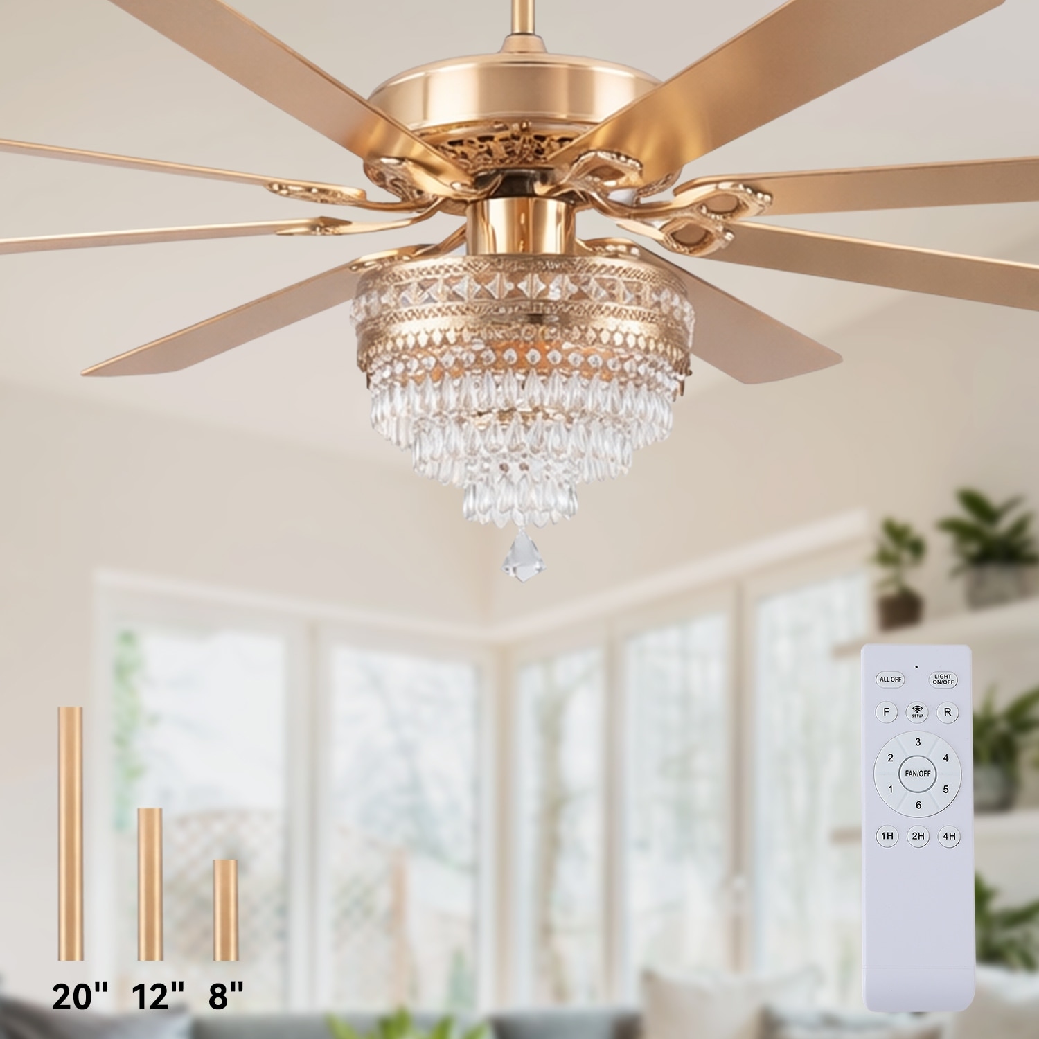 52 or 62 Inches Crystal Ceiling Fan Fandelier with Lights,For Bedroom Kitchen Patio Remote Control