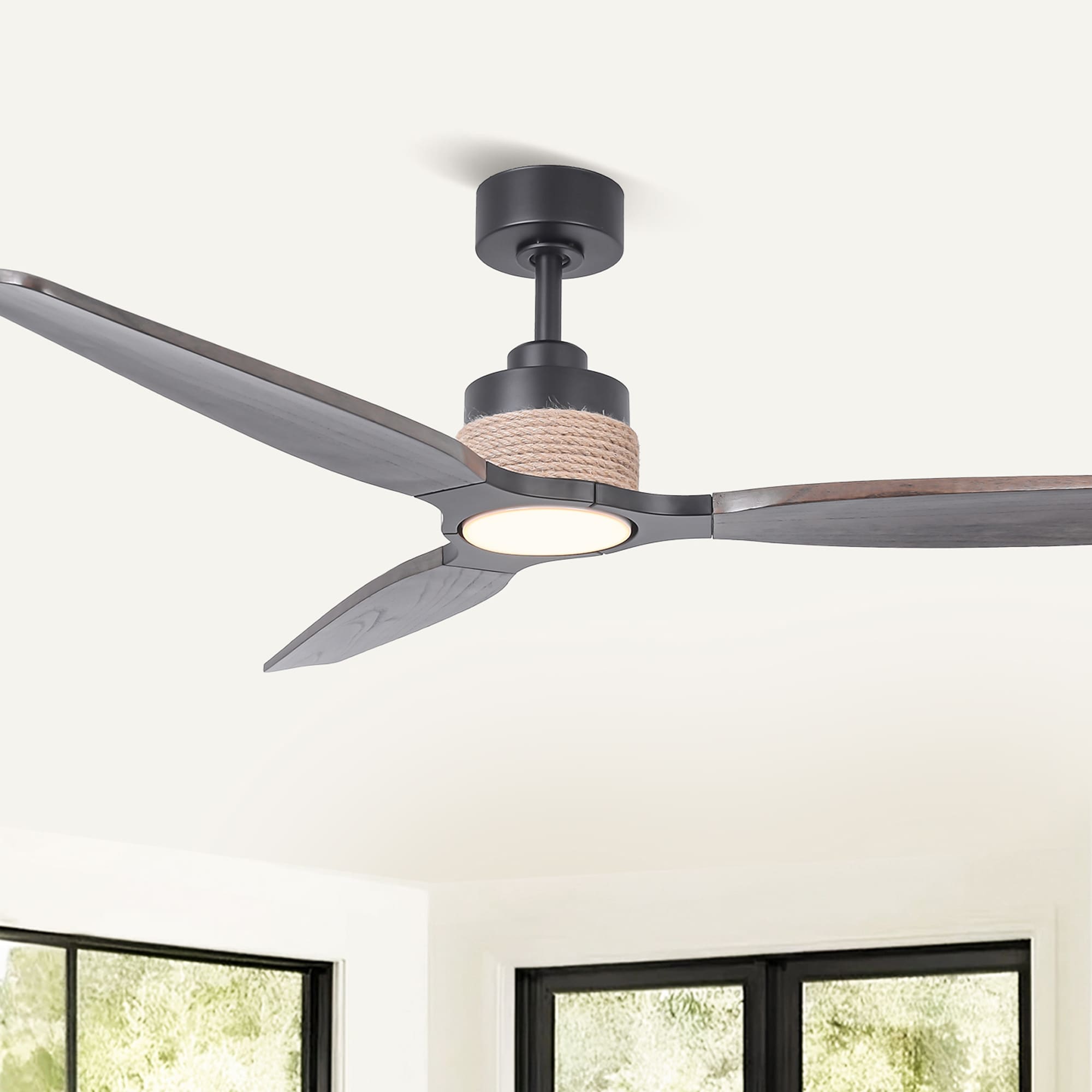 56" American Country Jute Solid Wood Black Ceiling Fan with 3CCT Light and Remote