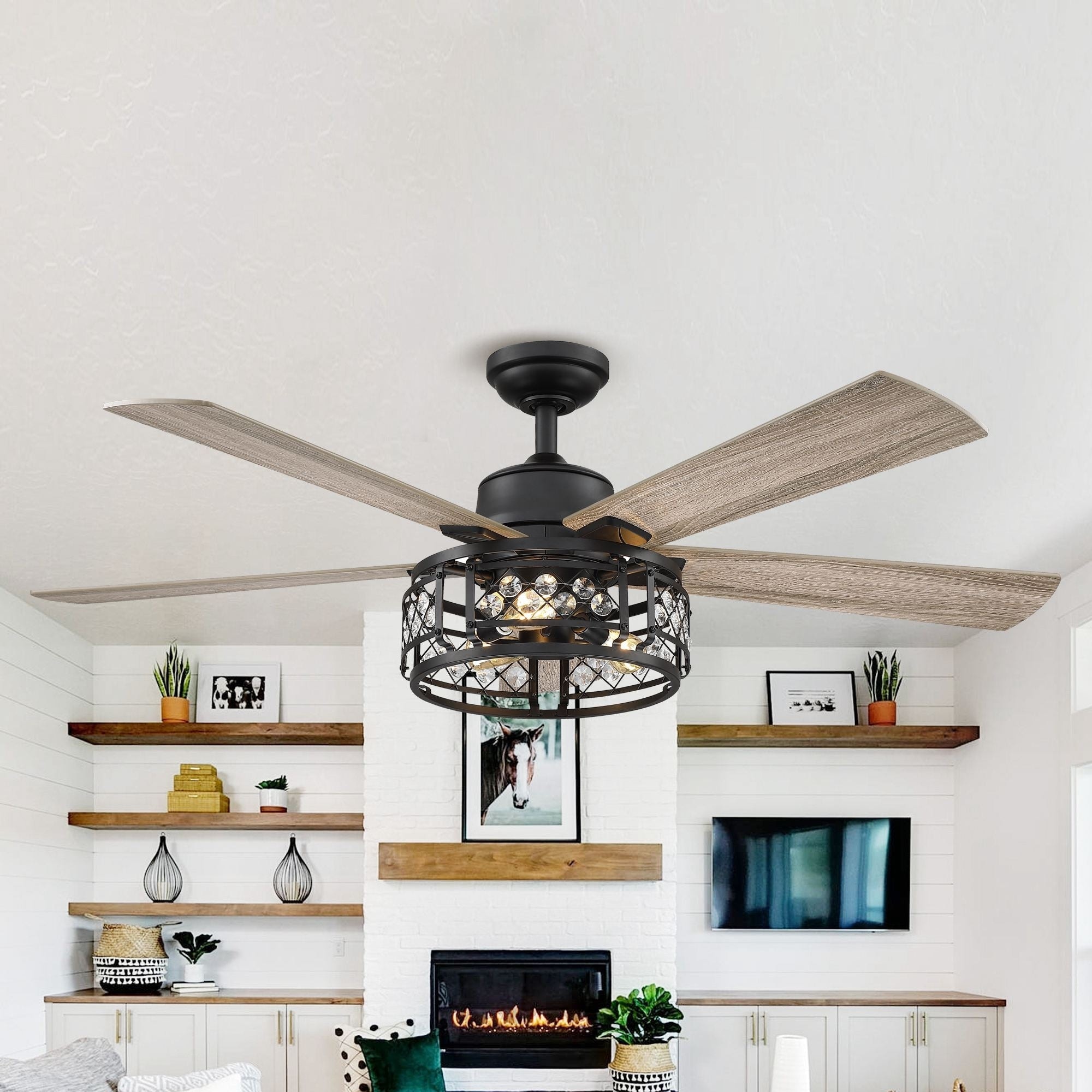 Sofucor 52" Ceiling Fan with Light Remote, Classical Crystal Chandelier fan, 5 Reversible Blades & Reverse Airflow