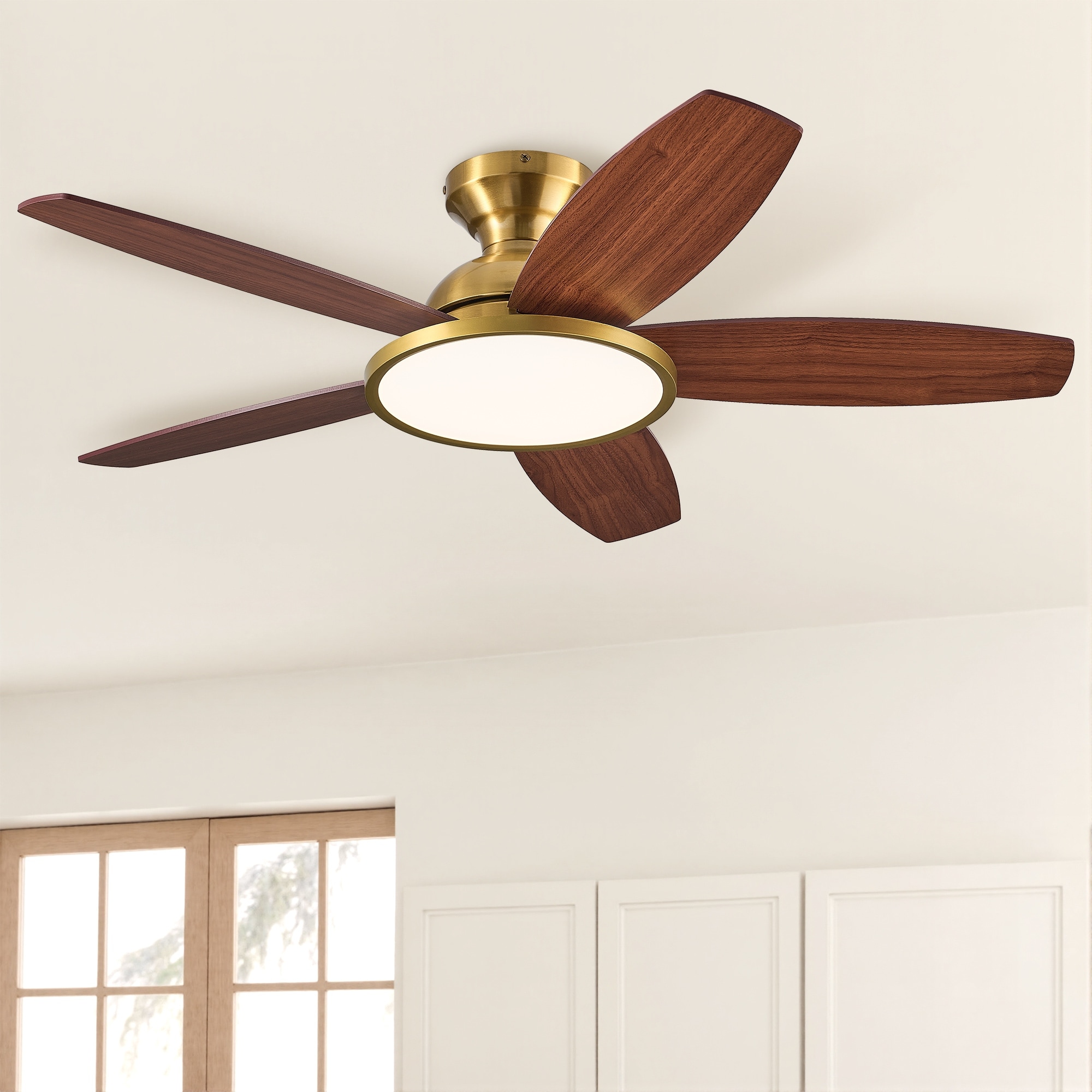 5 - Blade Low Profile Flush Mount Modern Ceiling Fan with LED Light and Remote