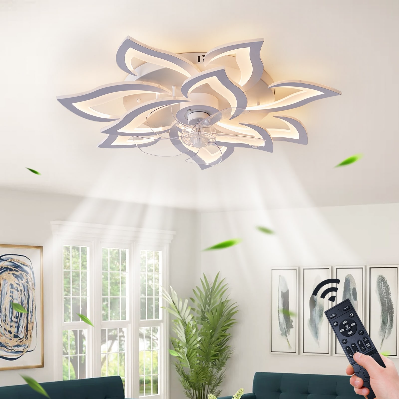 32in Modern Low Profile Dimmable Flower Shape Ceiling Fan with Lights - N/A